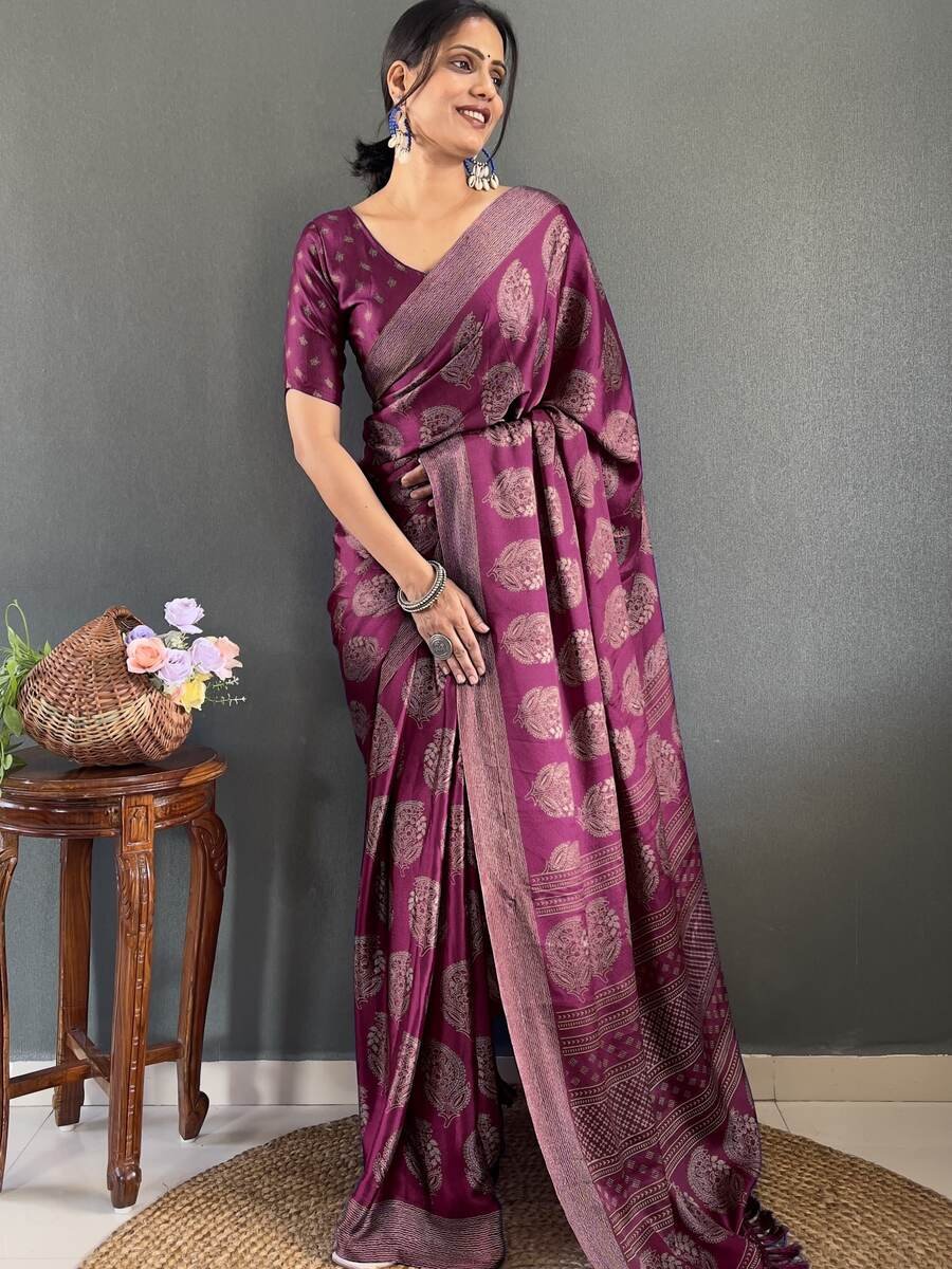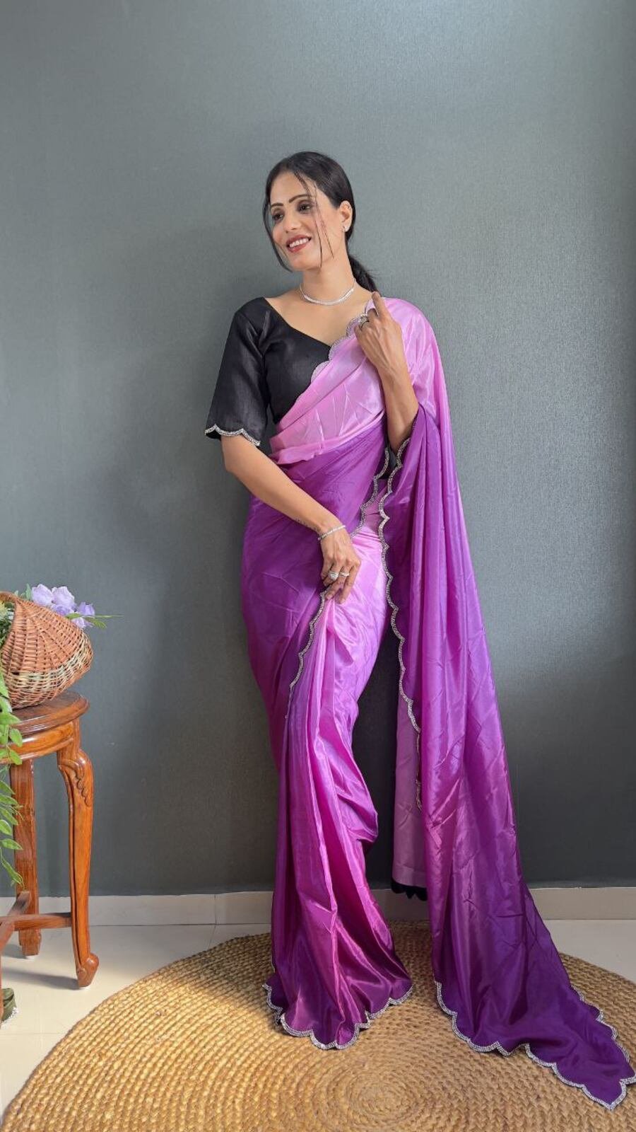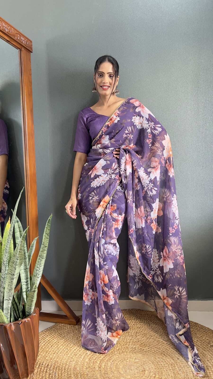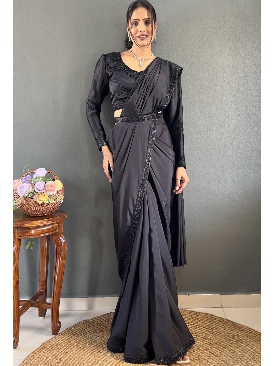 DESIGNER CHINON EMBROIDERY CODING WORK READY TO WEAR SAREE STITCHED BLOUSE WITH JACKET LAVENDER