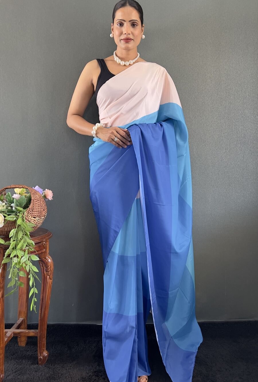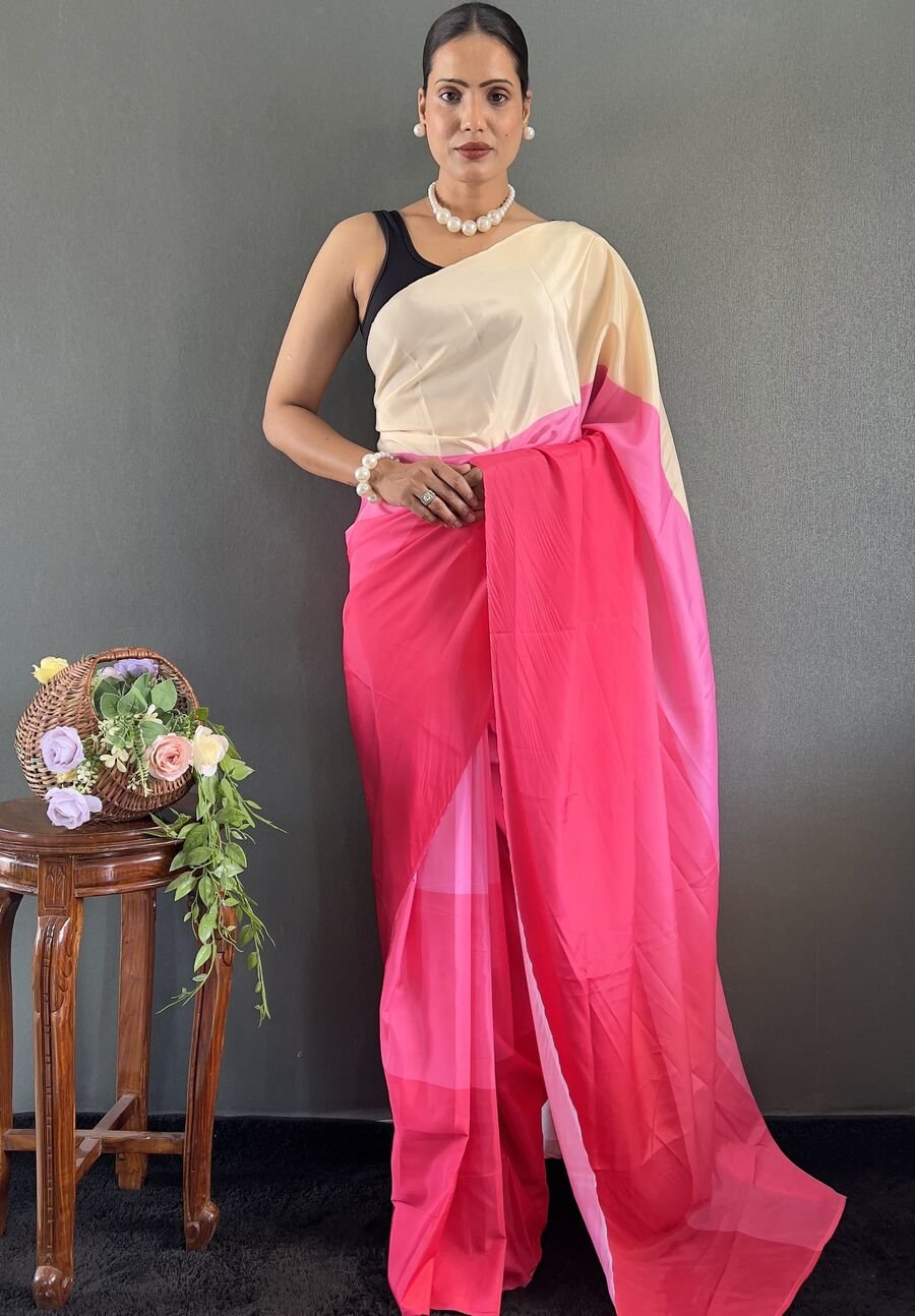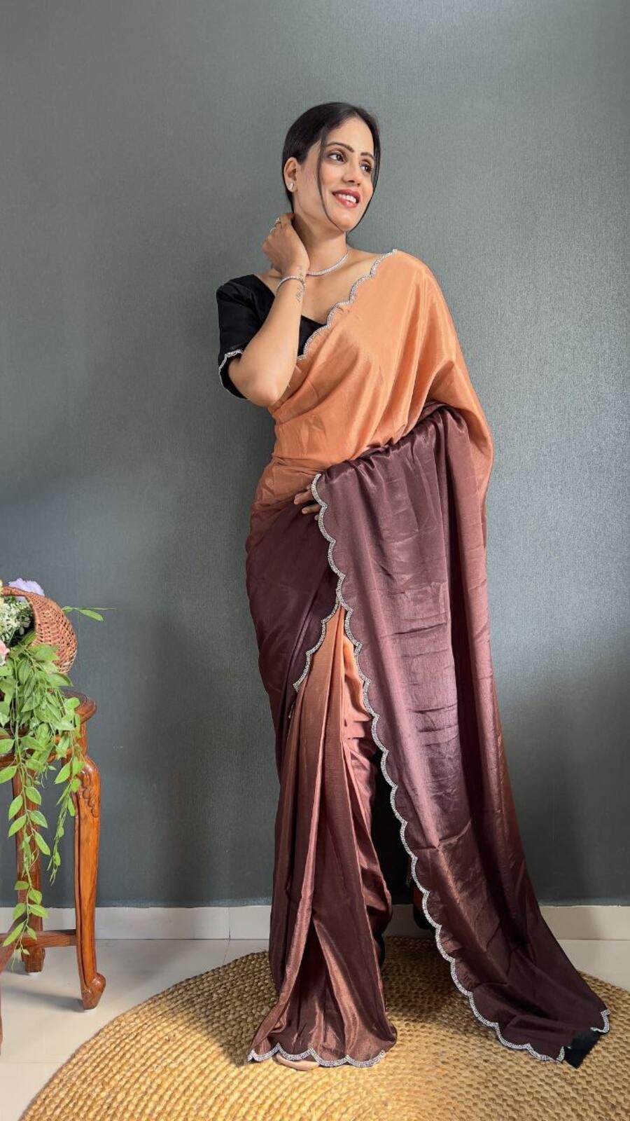 DESIGNER CHINON EMBROIDERY CODING WORK READY TO WEAR SAREE STITCHED BLOUSE WITH JACKET LAVENDER