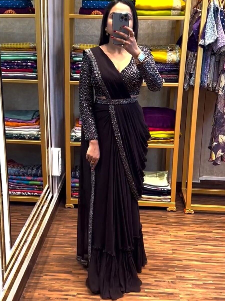 SAREE DETAILS FABRIC : HEAVY CHINON WORK. : EMBROIDERY CORDING WORK STITCHING TYPE : READY TO WEAR JACKET FABRIC :- HEAVY BANGLORI WORK :- EMBROIDERY CORDING WORK ( FULL STITCHED) SIZE :- FULL STITCHED UP TO ...