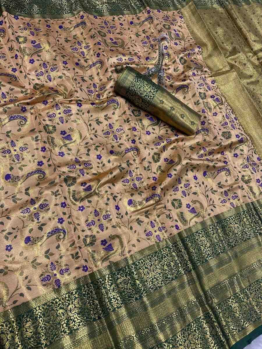 MODERN PAITHANI SILK ZARI WEAVING WORK SAREE WITH UNSTITCHED BLOUSE GREEN