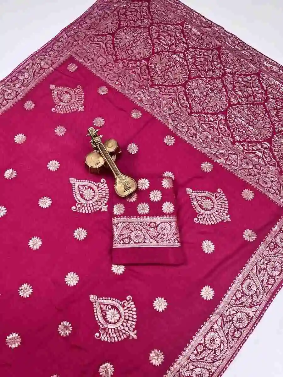 DESIGNER LICHI SILK JACQUARD WORK SAREE WITH UNSTITCHED BLOUSE RANI