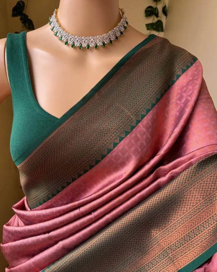 TRENDING LICHI SILK BANARASI WEAVING WORK SAREE WITH UNSTITCHED BLOUSE PINK