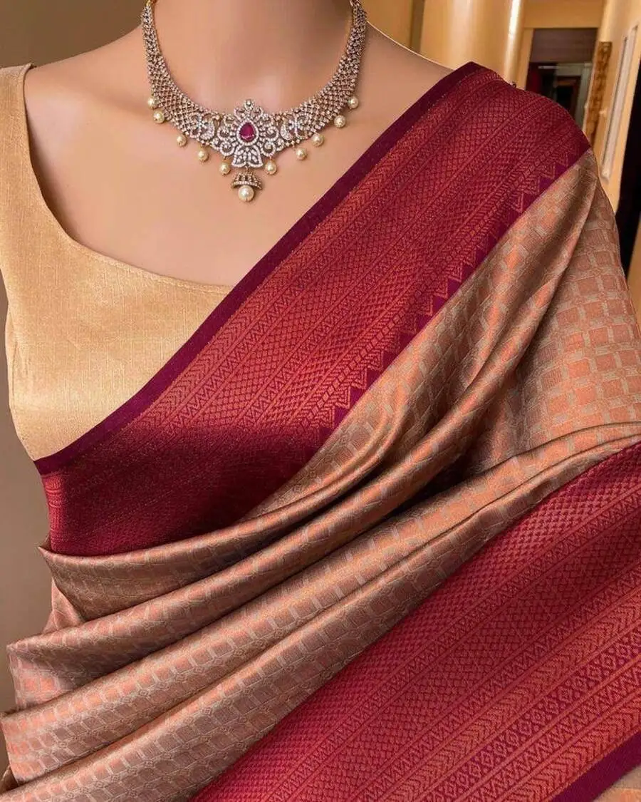 DESIGNER LICHI SILK JACQUARD WORK SAREE WITH UNSTITCHED BLOUSE MAROON