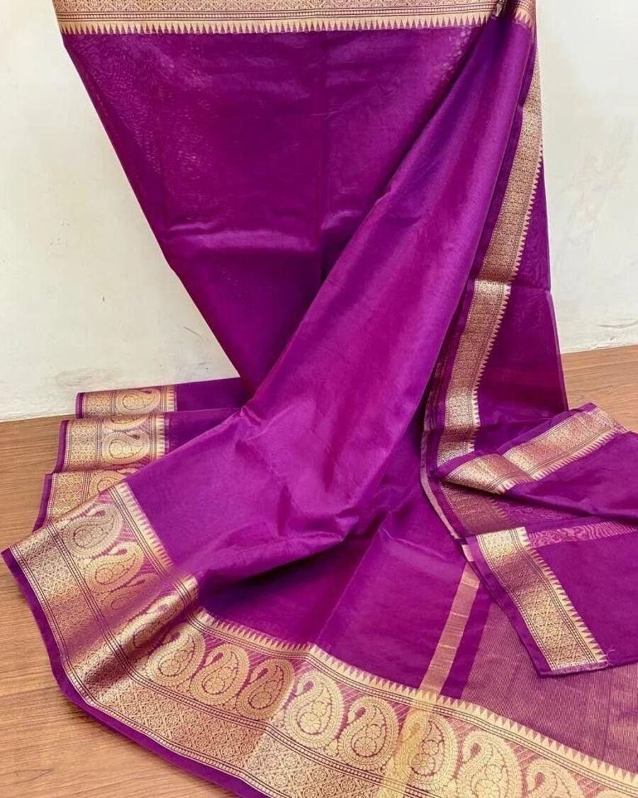 FANCY KUBERA PATTU SILK SAREE WITH UNSTICTHED BLOUSE PURPLE