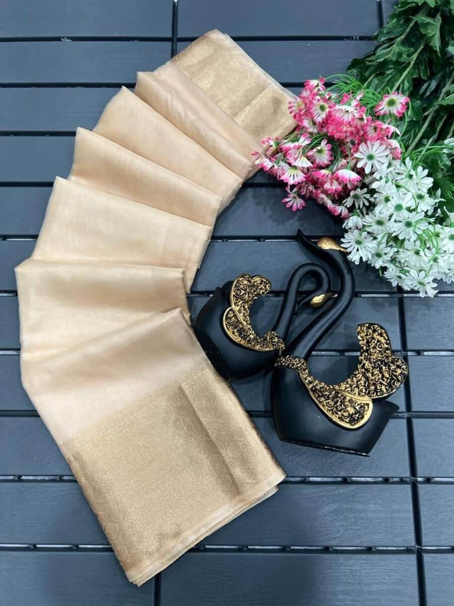 DESIGNER ORGANZA ZARI WORK SAREE WITH UNSTITCHED BLOUSE CREAM