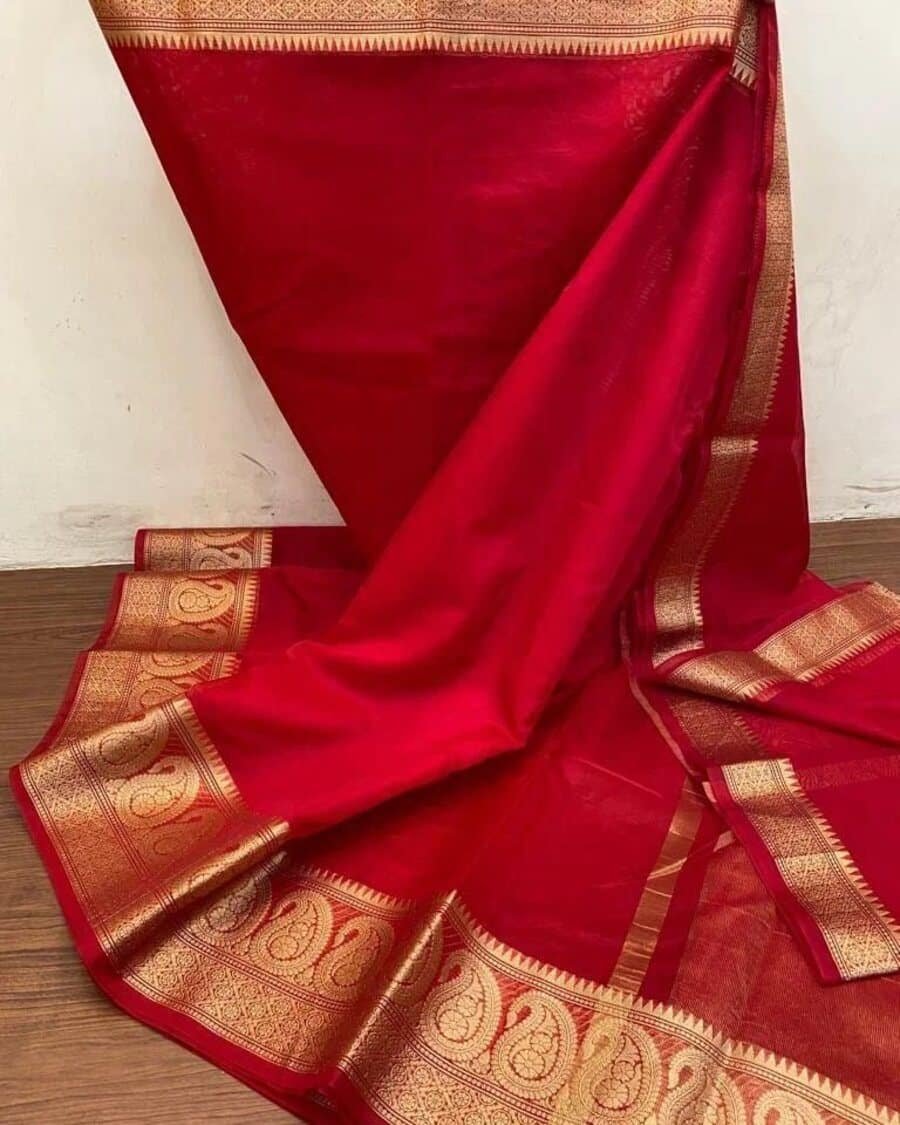 DESIGNER SOFT LICHI SILK JACQUARD BORDER SAREE WITH UNSTITHCED BLOUSE RED