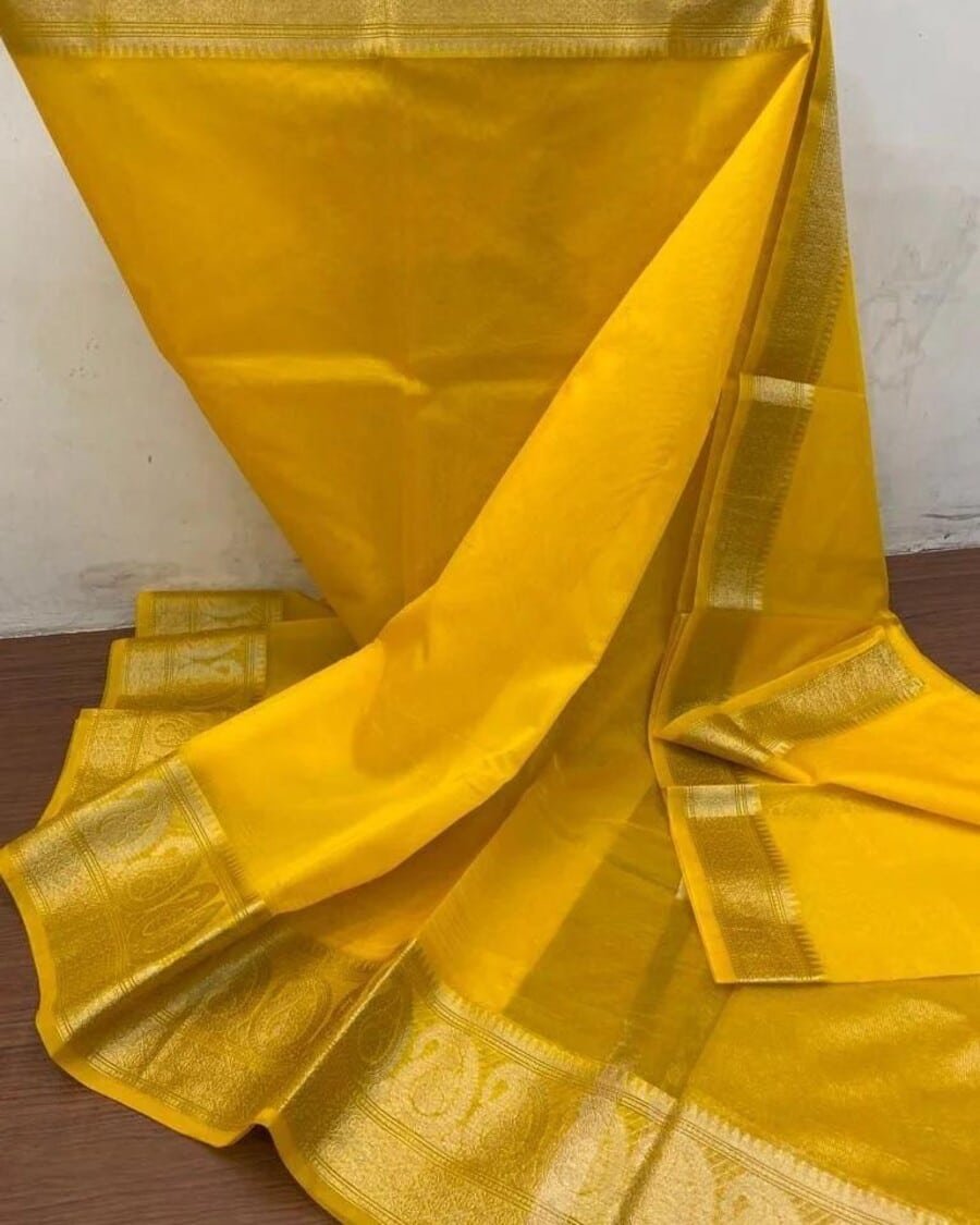 DESIGNER ORGANZA ZARI WORK SAREE WITH UNSTITCHED BLOUSE YELLOW