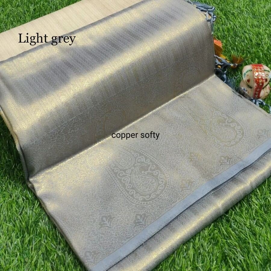 LATEST LICHI SILK JACQUARD WORK SAREE WITH UNSTITCHED BLOUSE GREY