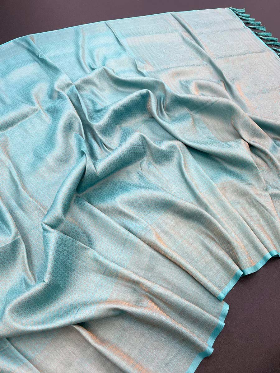 LATEST LICHI SILK JACQUARD WORK SAREE WITH UNSTITCHED BLOUSE SKY