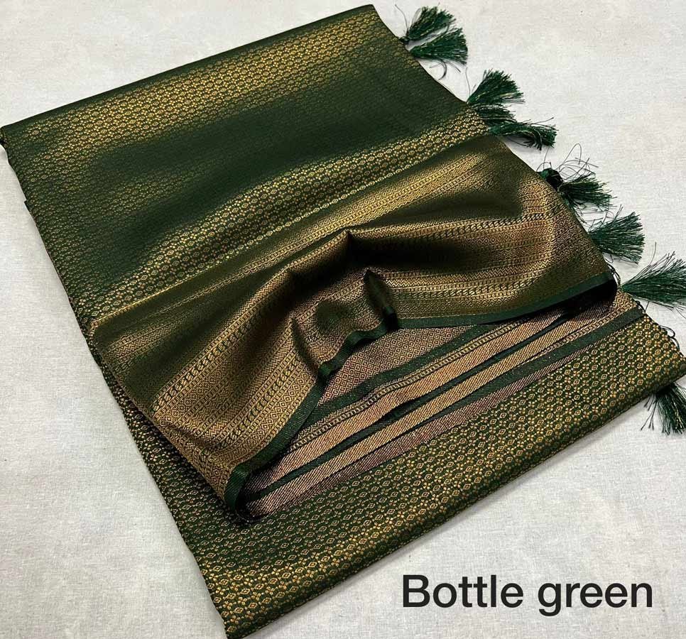 WEDDING WEAR SOFT SILK SAREE WITH UNSTITCHED BLOUSE BOTTLE GREEN
