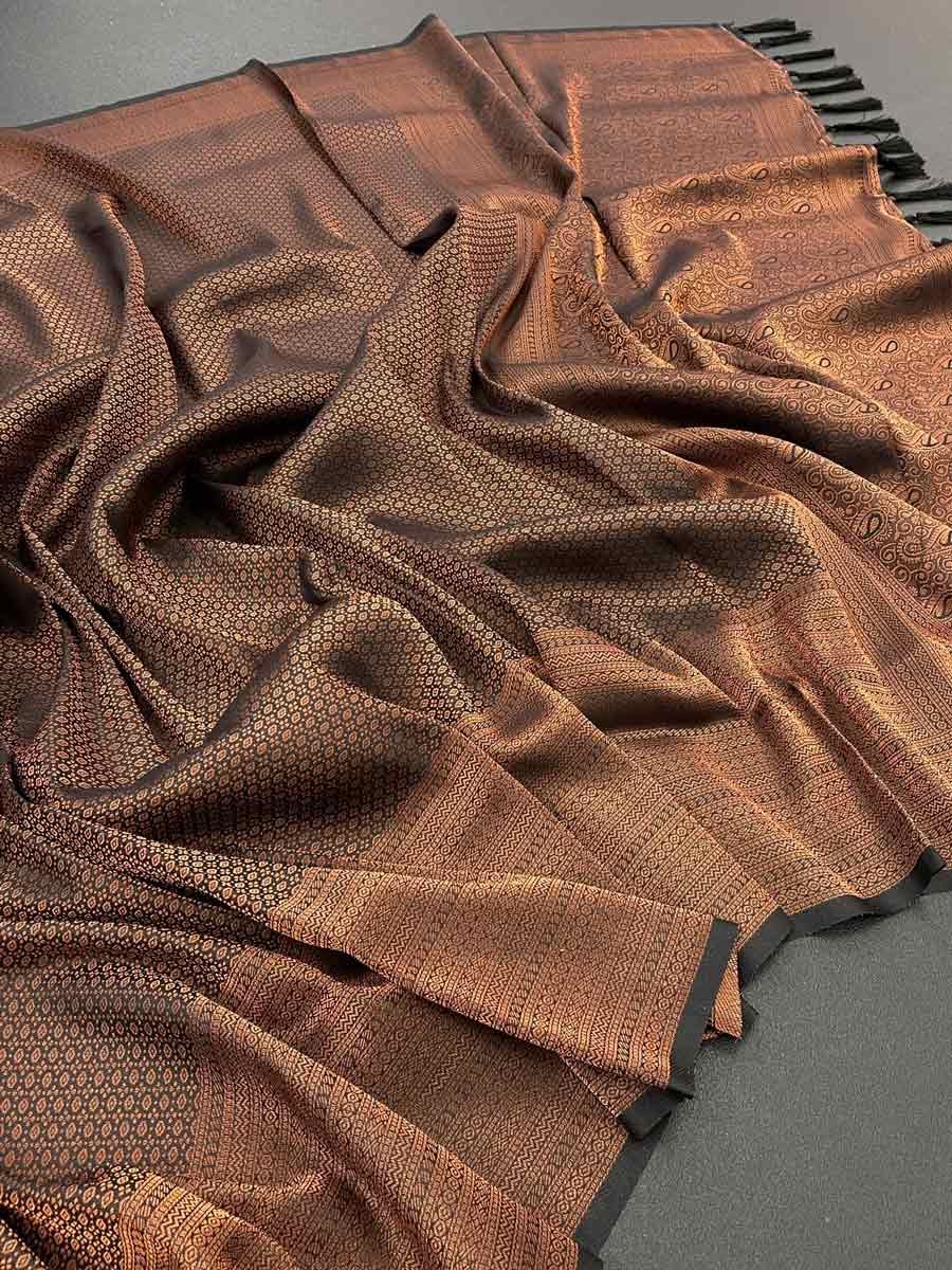LATEST LICHI SILK JACQUARD WORK SAREE WITH UNSTITCHED BLOUSE BLACK