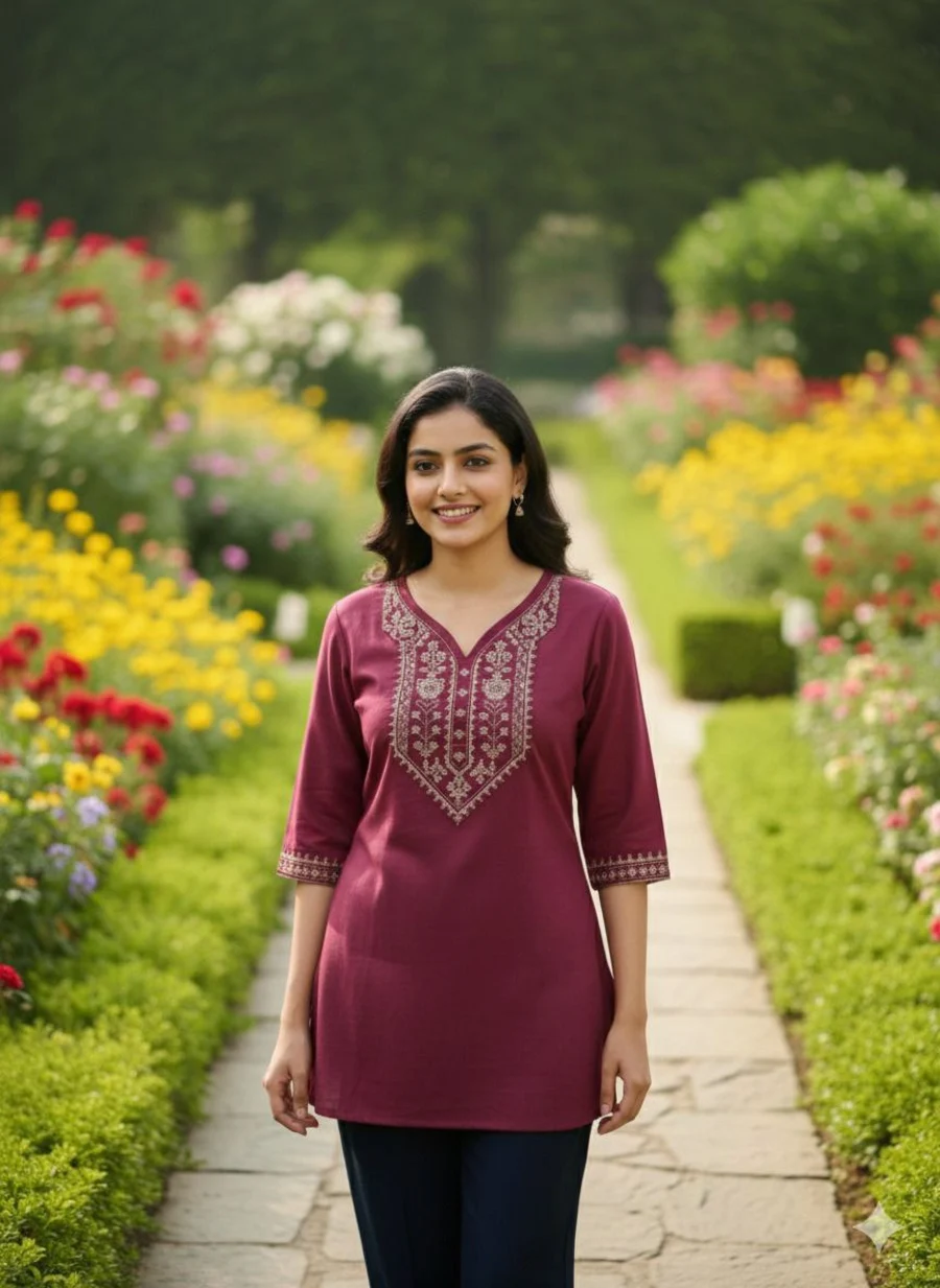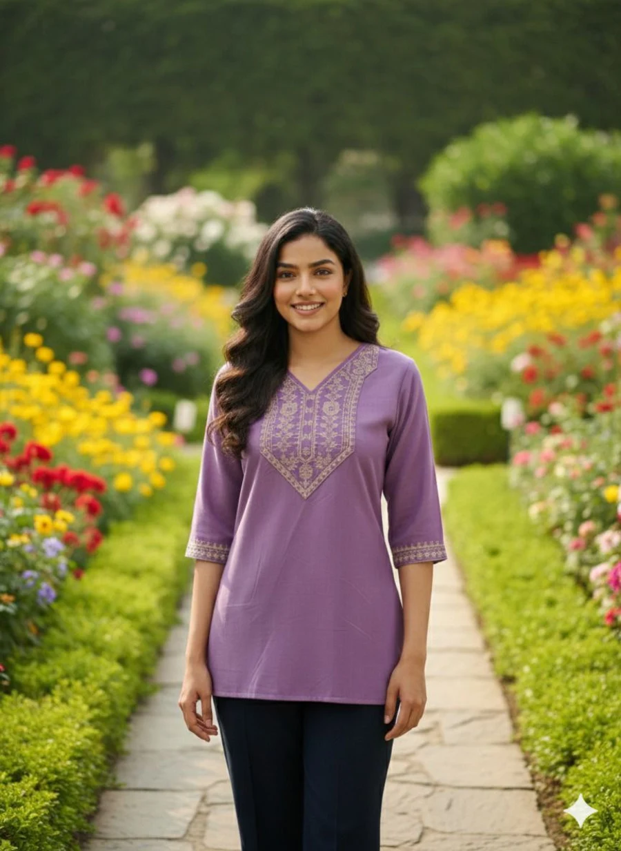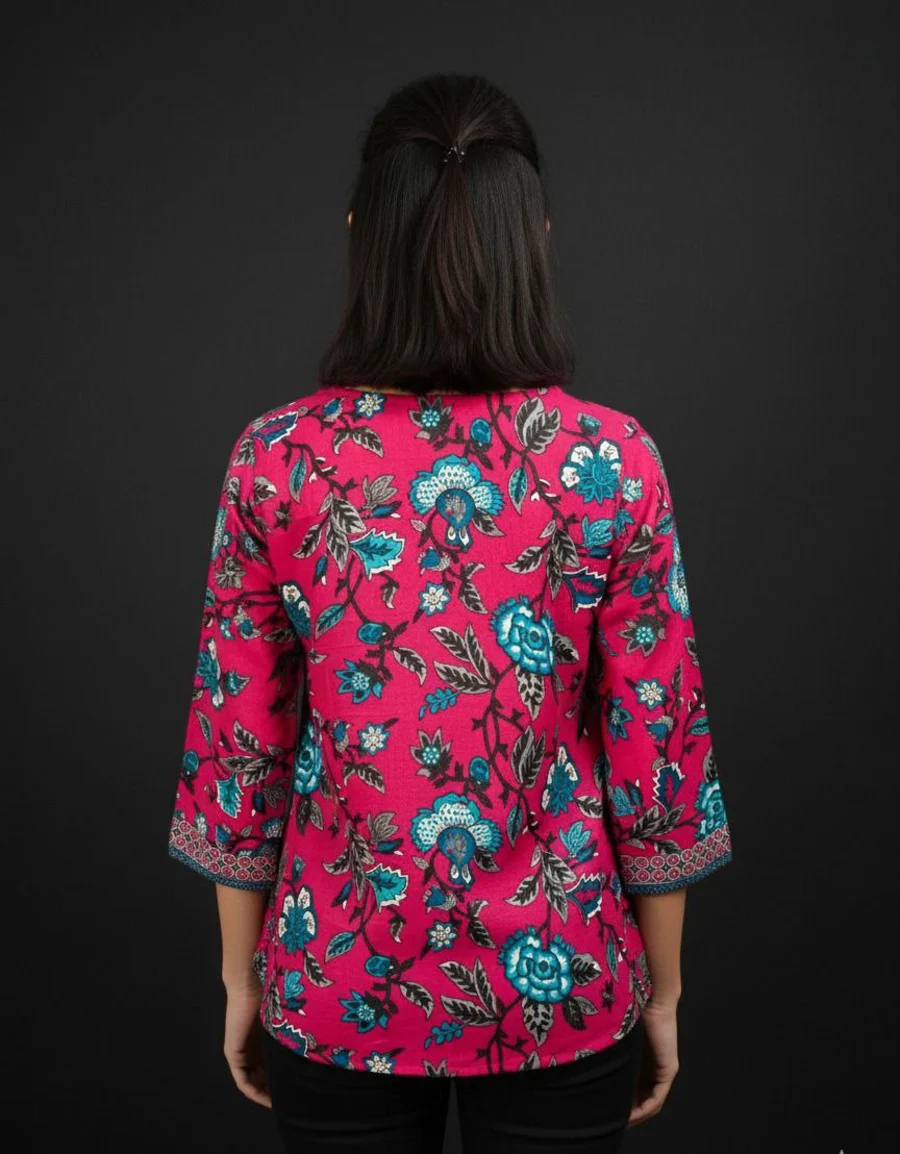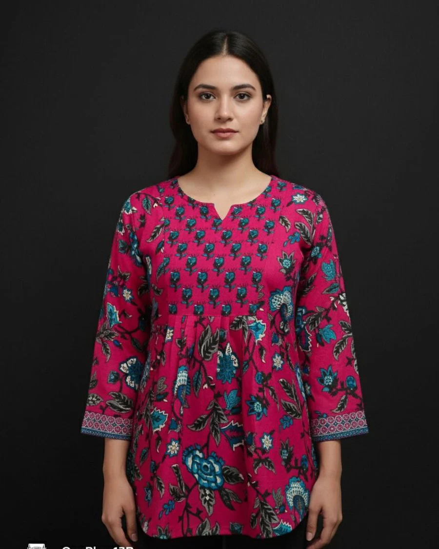 TOP TYPE : TOP FABRIC : COTTON WORK : PLAIN LENGTH : REGULAR NECK : V- NECK SLEEVE LENGTH : 3/4 SLEEVE STITCH : FULL STITCHING SIZE : S, M, L, XL,XXL BUST : S(36), M(38), ...