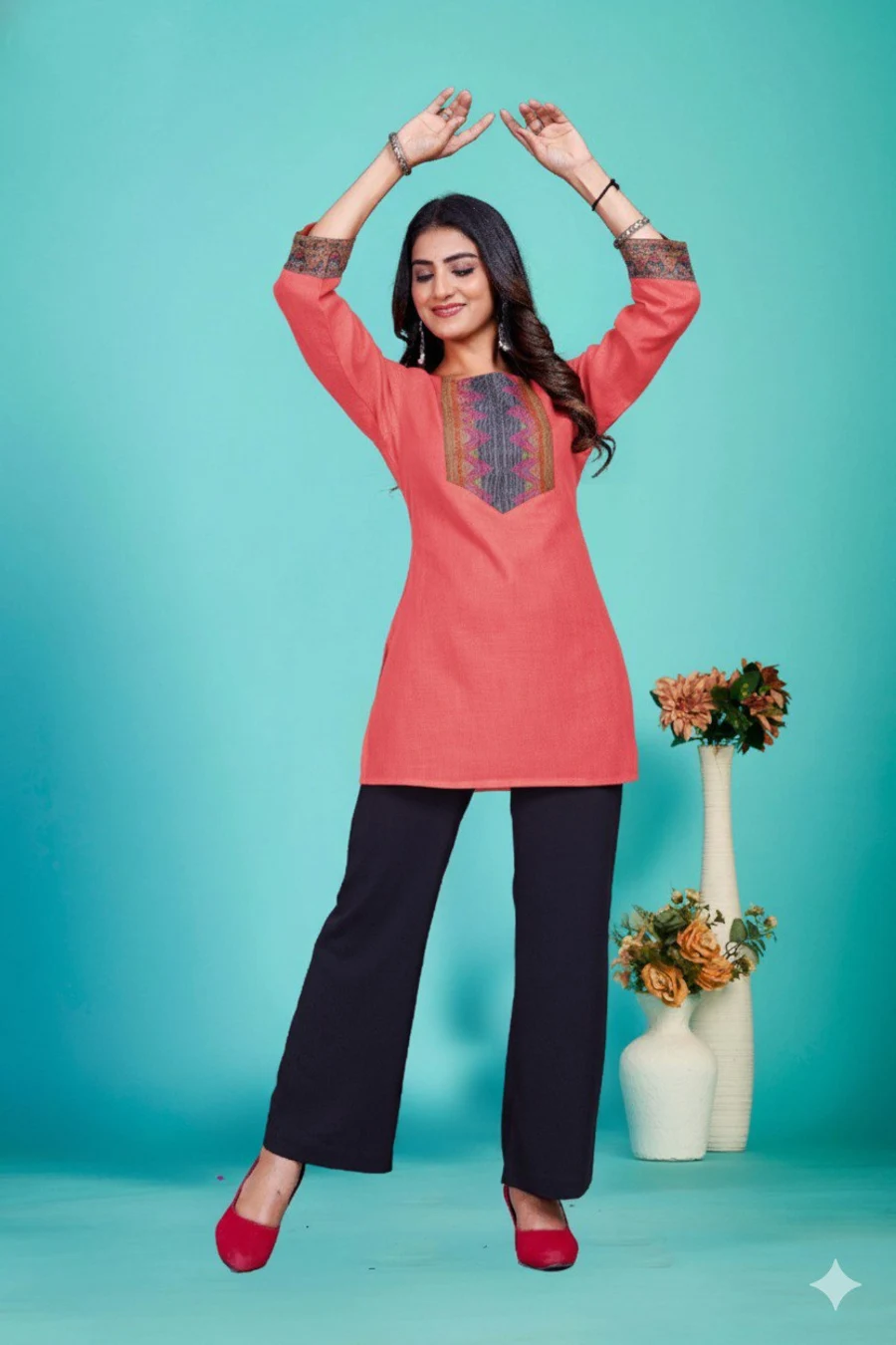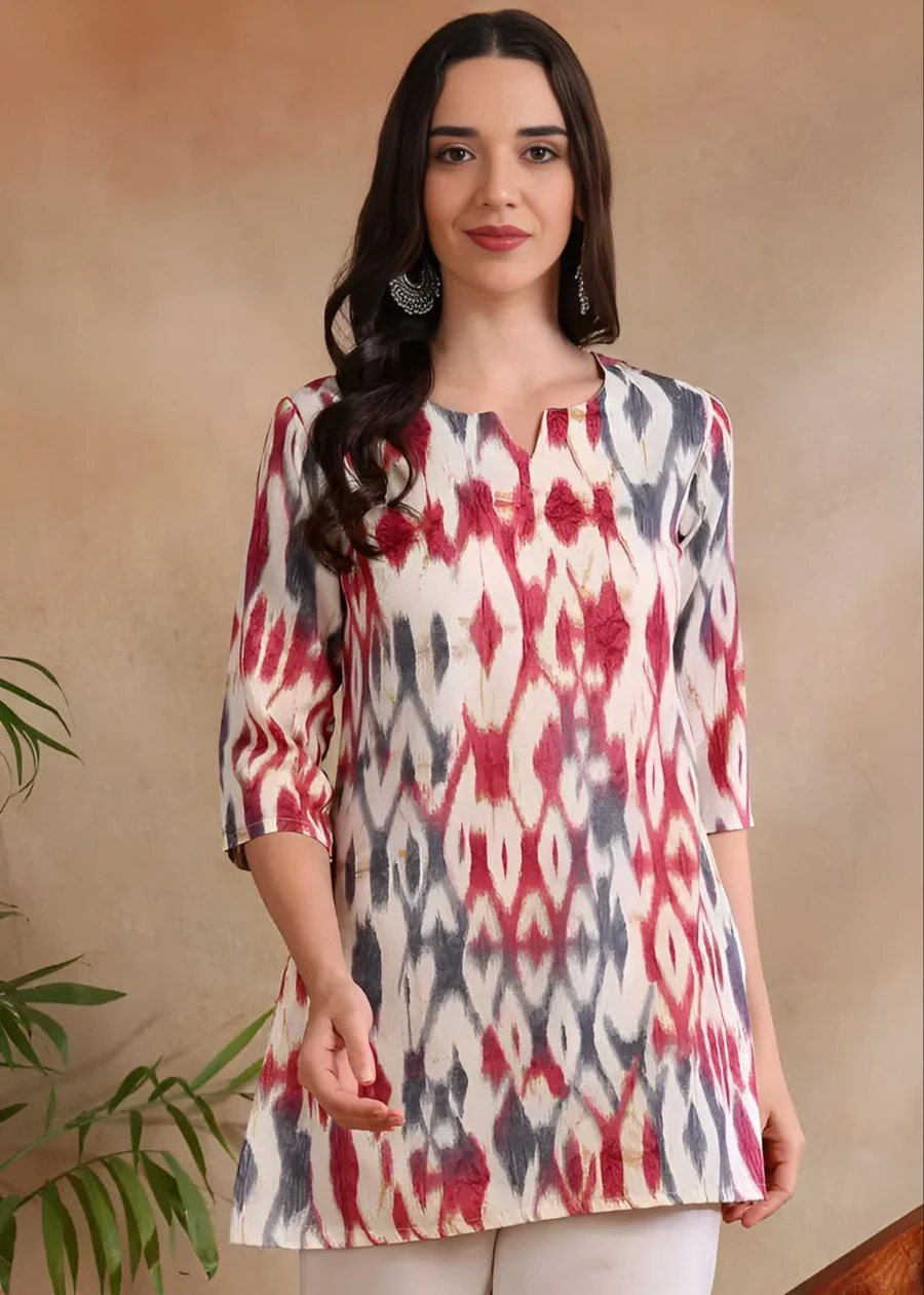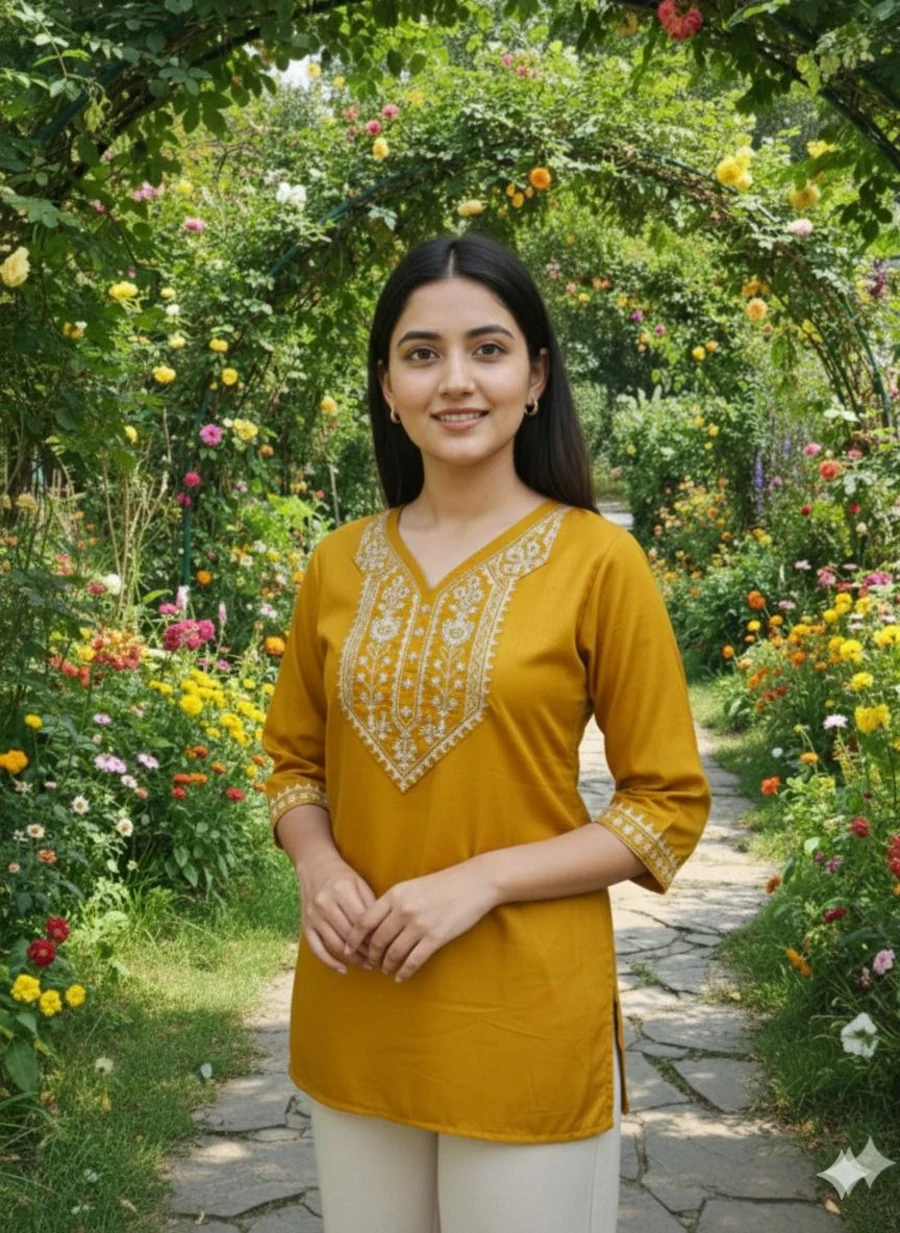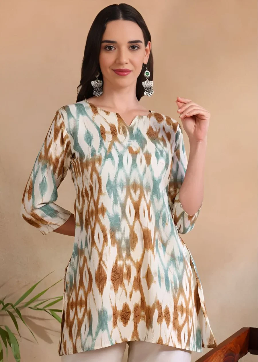 TOP TYPE : TOP FABRIC : COTTON WORK : PLAIN LENGTH : REGULAR NECK : V- NECK SLEEVE LENGTH : 3/4 SLEEVE STITCH : FULL STITCHING SIZE : S, M, L, XL,XXL BUST : S(36), M(38), ...