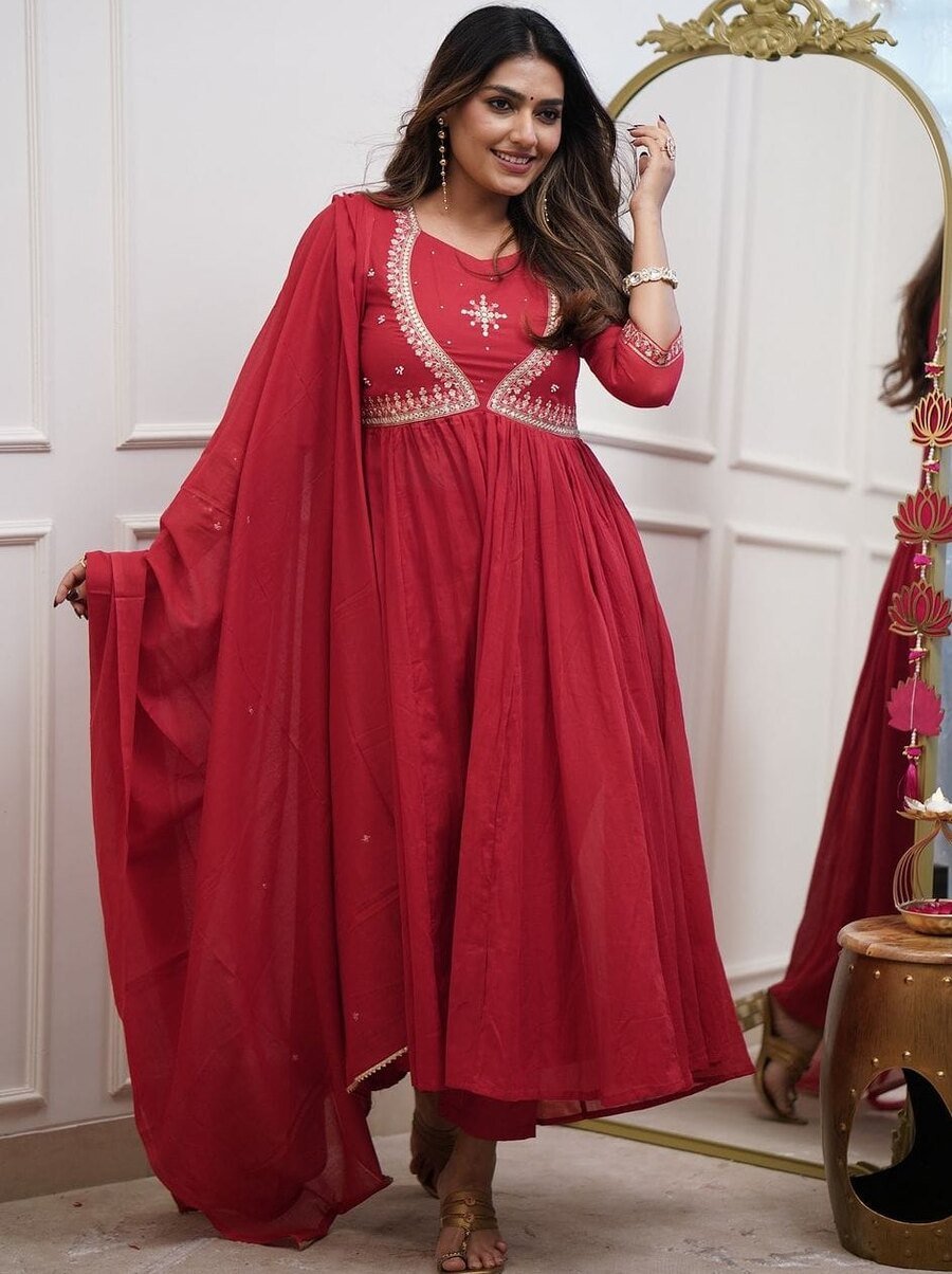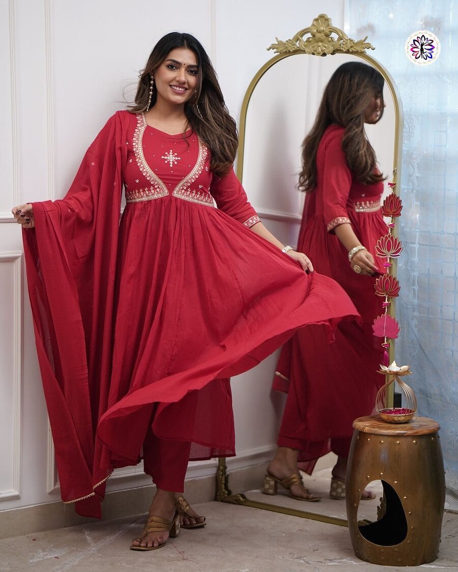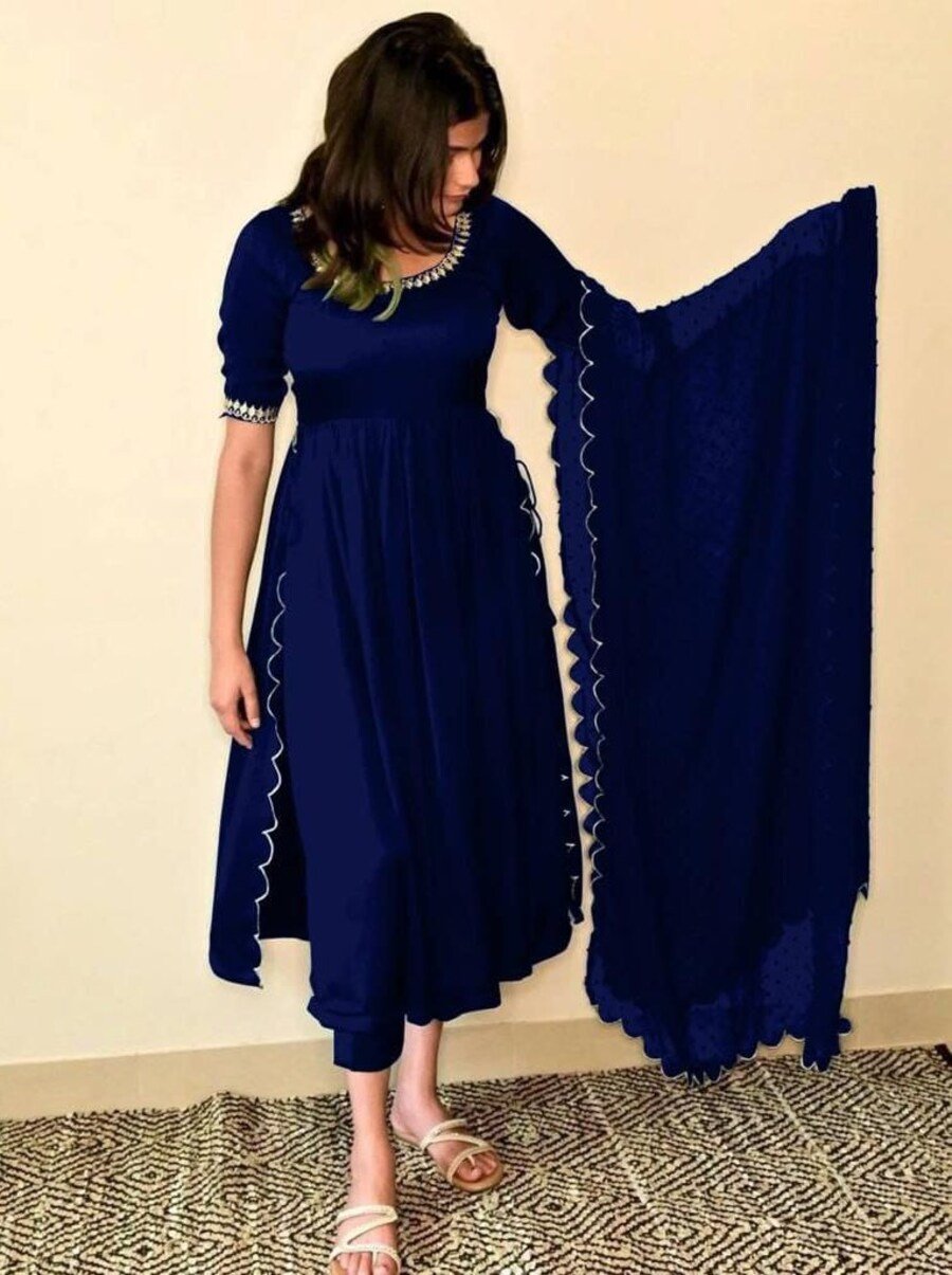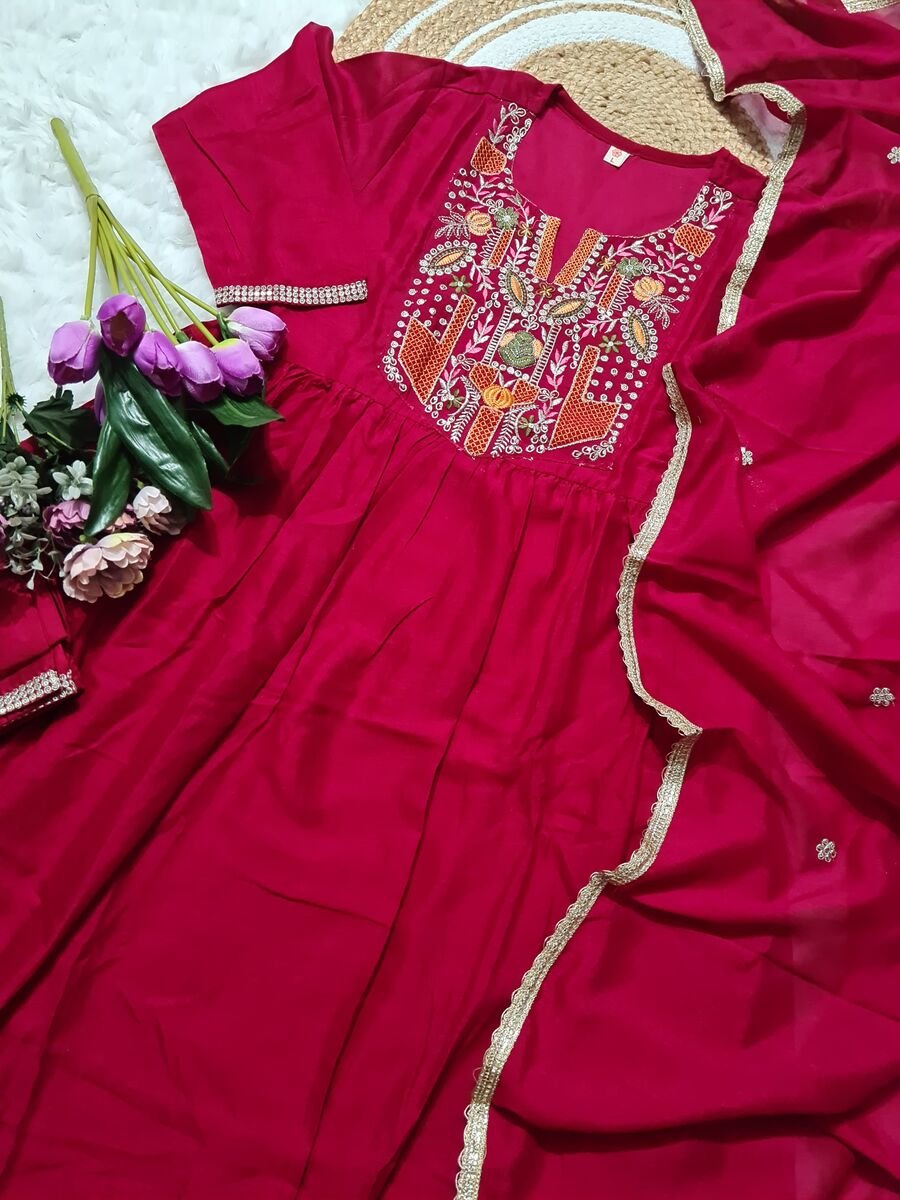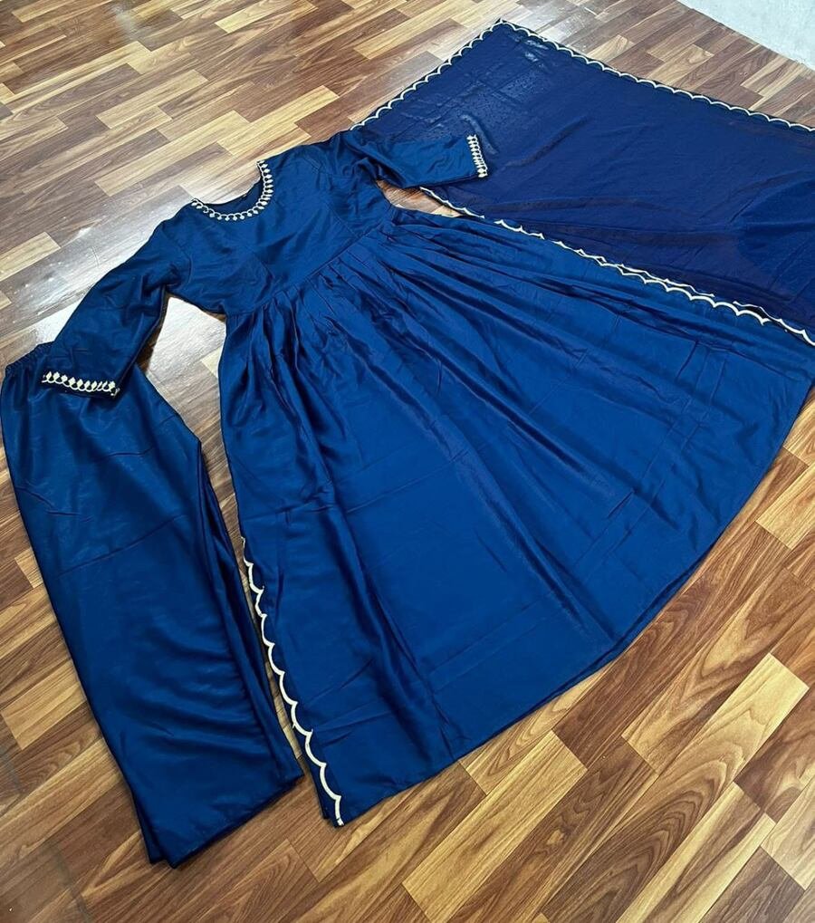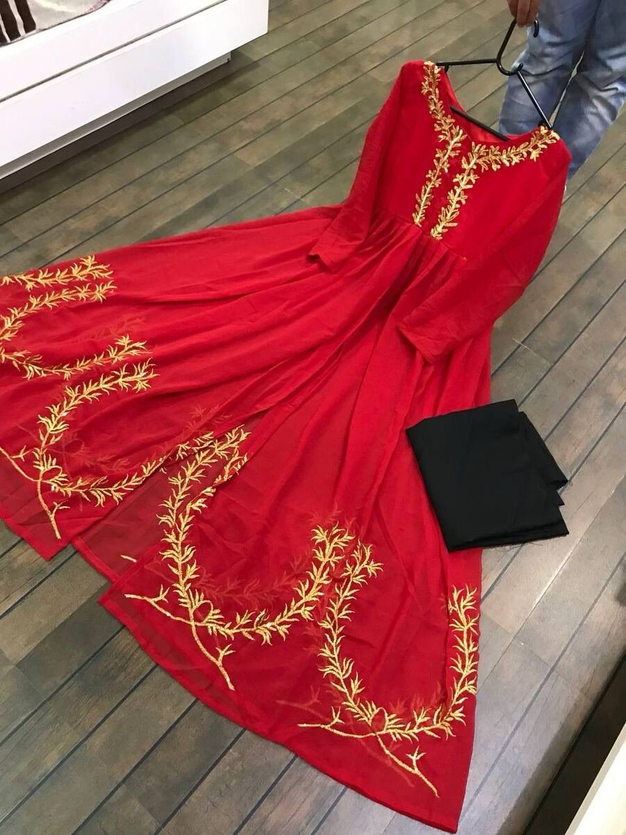 TOP : FABRIC : CHINON WORK : COTTON THREAD EMBROIDERY WORK WITH GPO LACE WORK INNER : SILK HEIGHT : 48”INCH TOP SIZE : M-38” ,L-40” , XL-42” , XXL-44” BOTTOM : FABRIC : CHINON SIZE ...