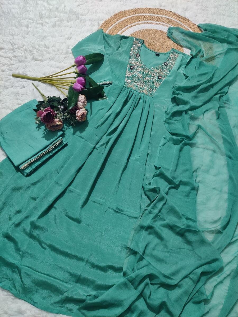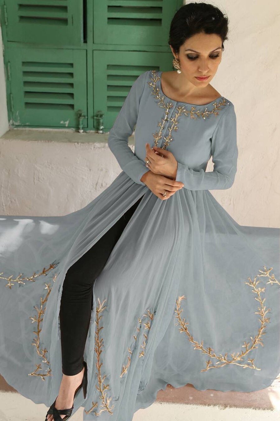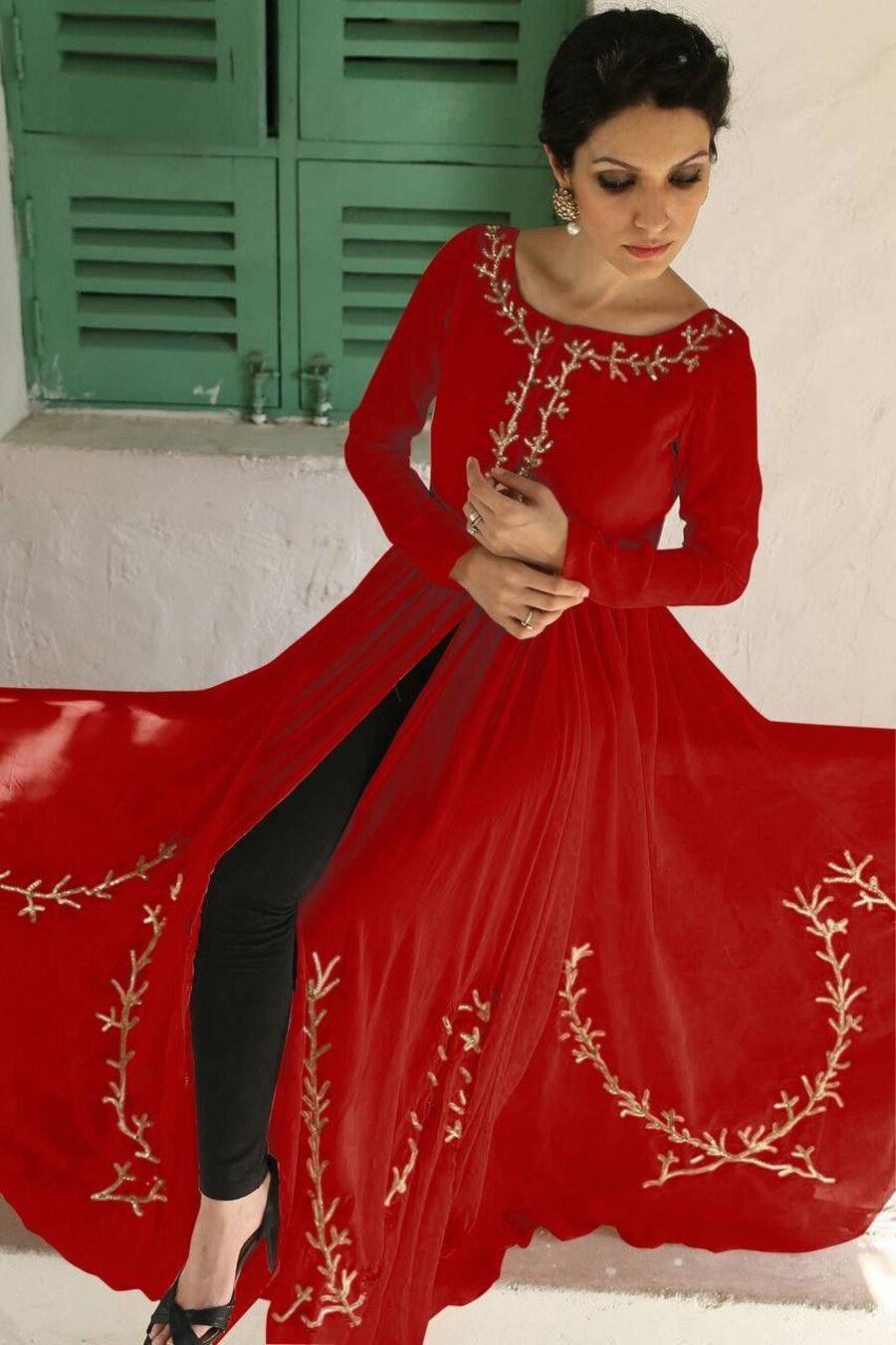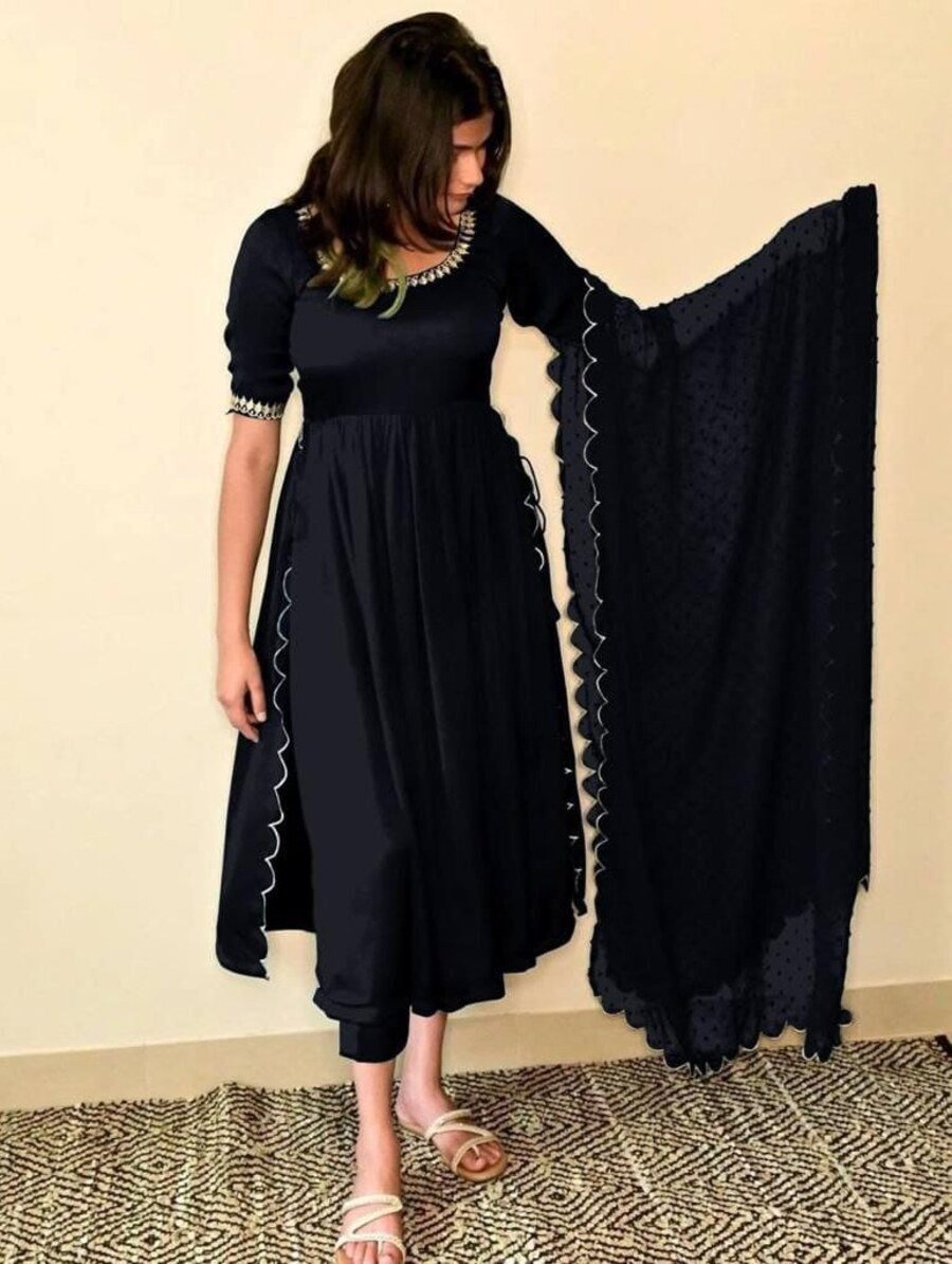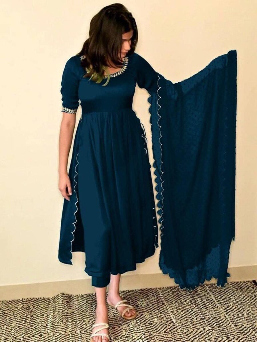 TOP : FABRIC : CHINON WORK : COTTON THREAD EMBROIDERY WORK WITH GPO LACE WORK INNER : SILK HEIGHT : 48”INCH TOP SIZE : M-38” ,L-40” , XL-42” , XXL-44” BOTTOM : FABRIC : CHINON SIZE ...