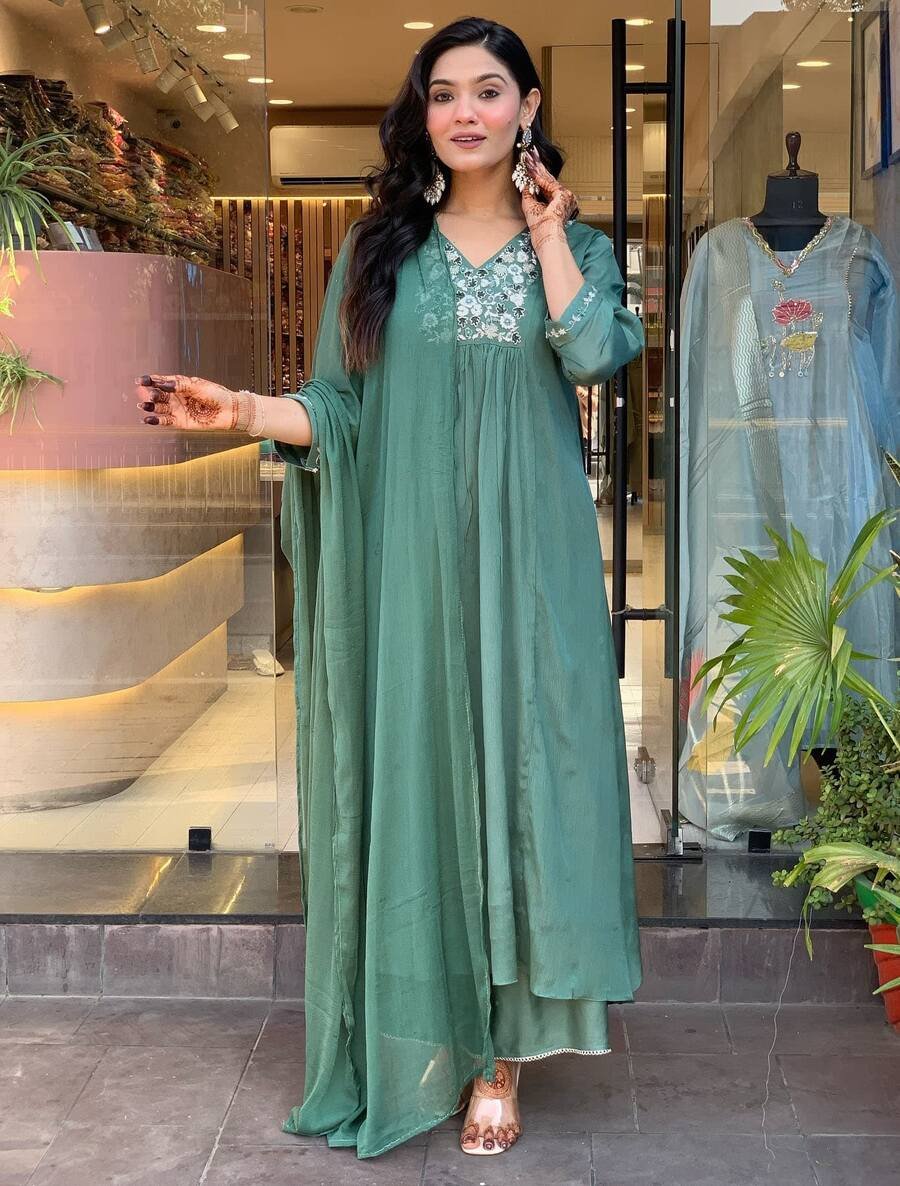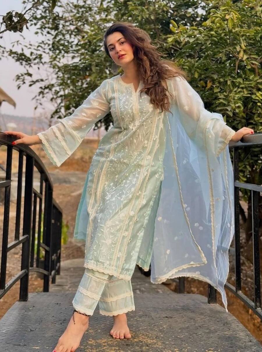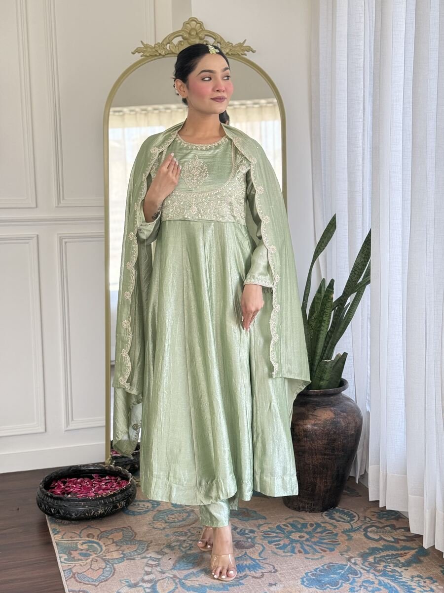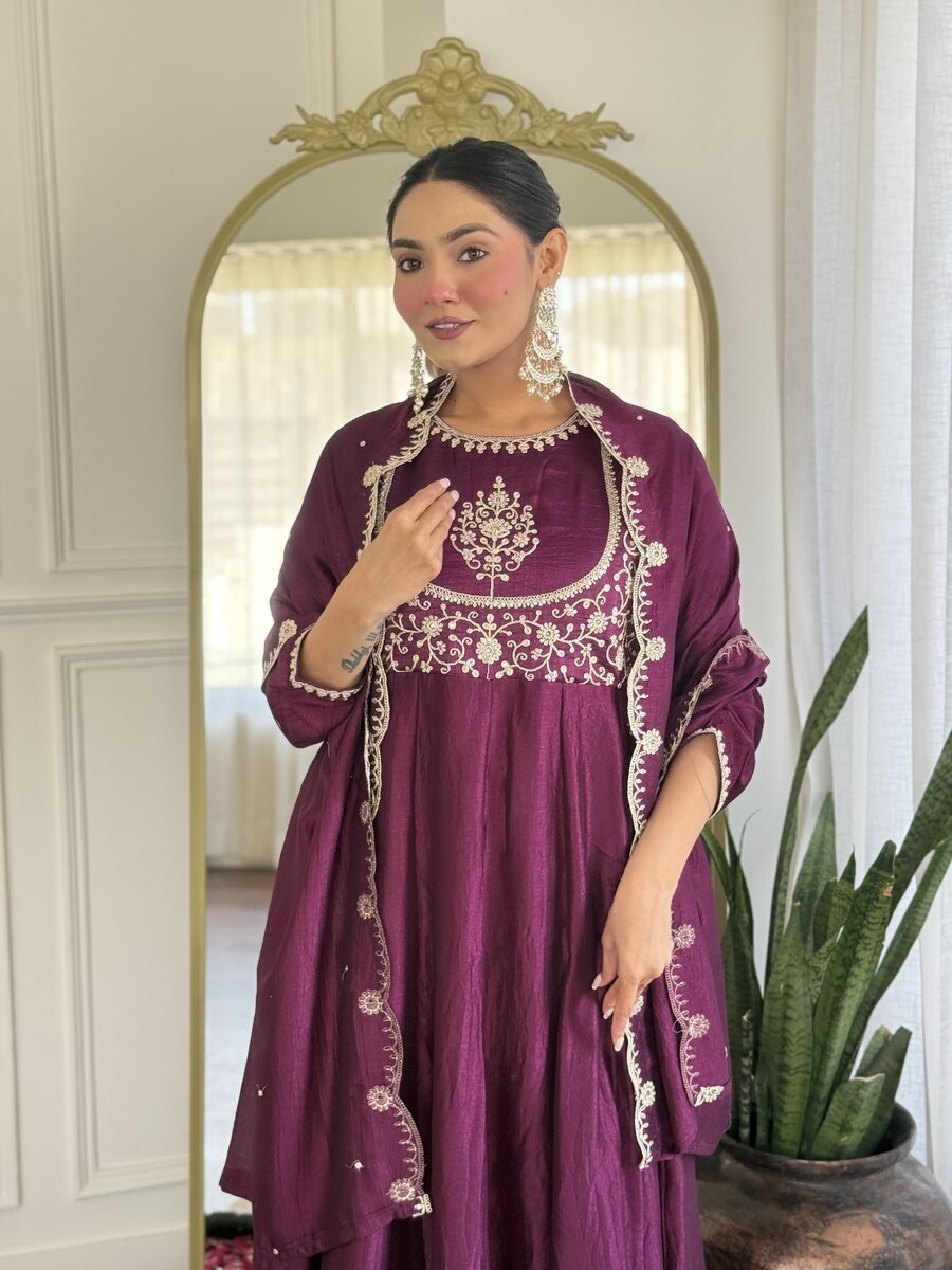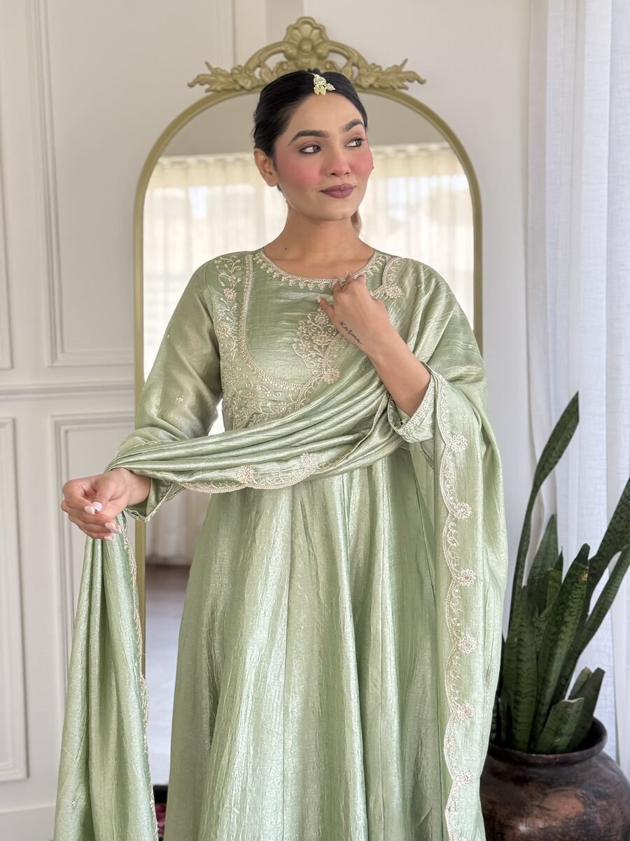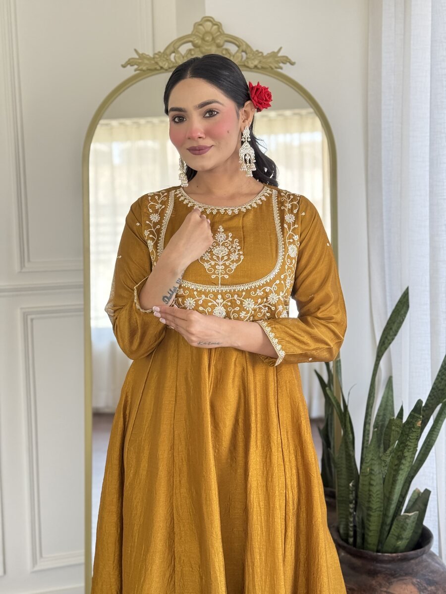 TOP : FABRIC : CHINON WORK : COTTON THREAD EMBROIDERY WORK WITH GPO LACE WORK INNER : SILK HEIGHT : 48”INCH TOP SIZE : M-38” ,L-40” , XL-42” , XXL-44” BOTTOM : FABRIC : CHINON SIZE ...