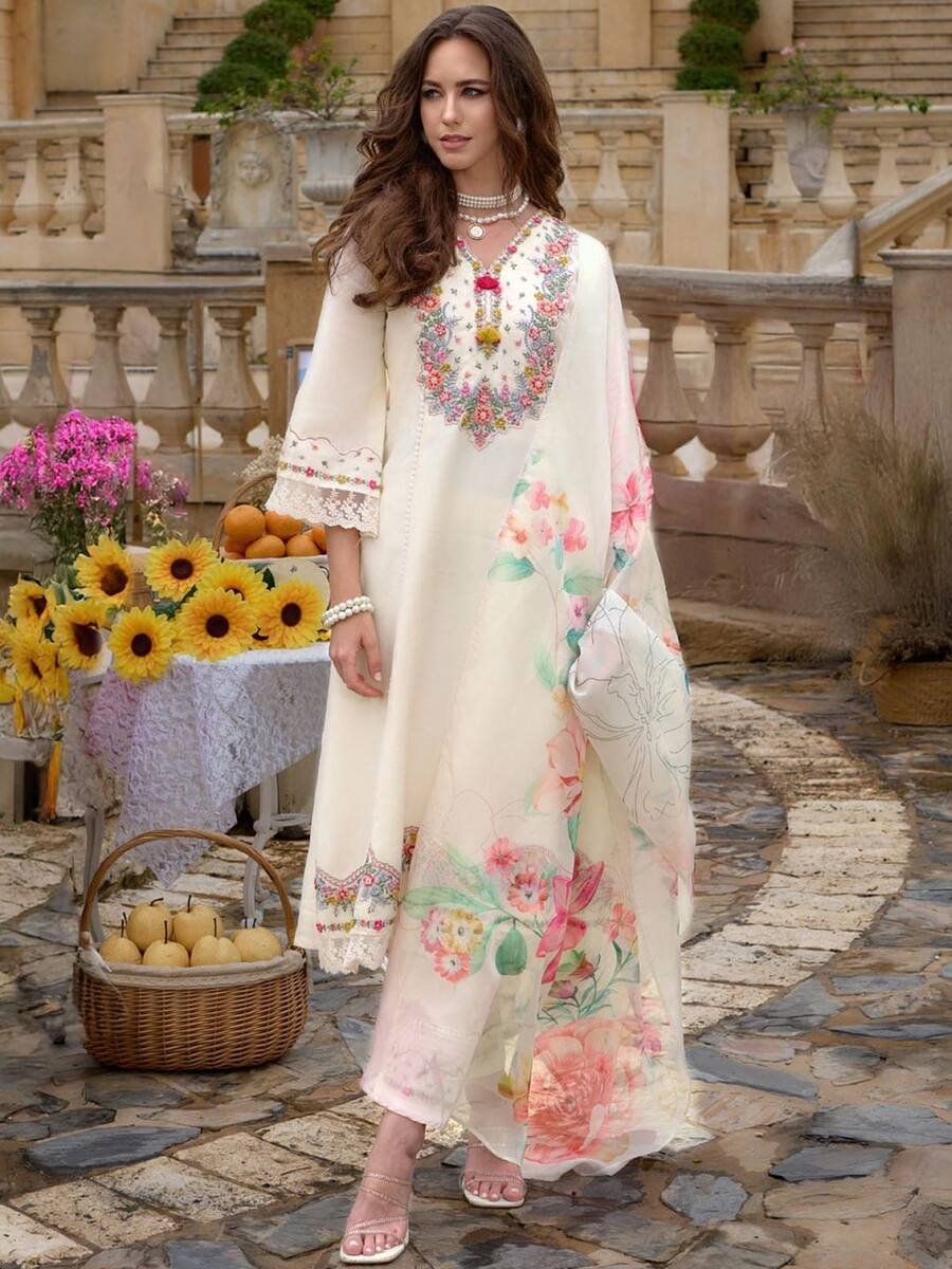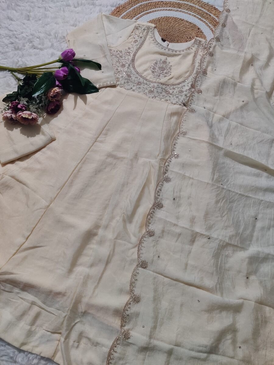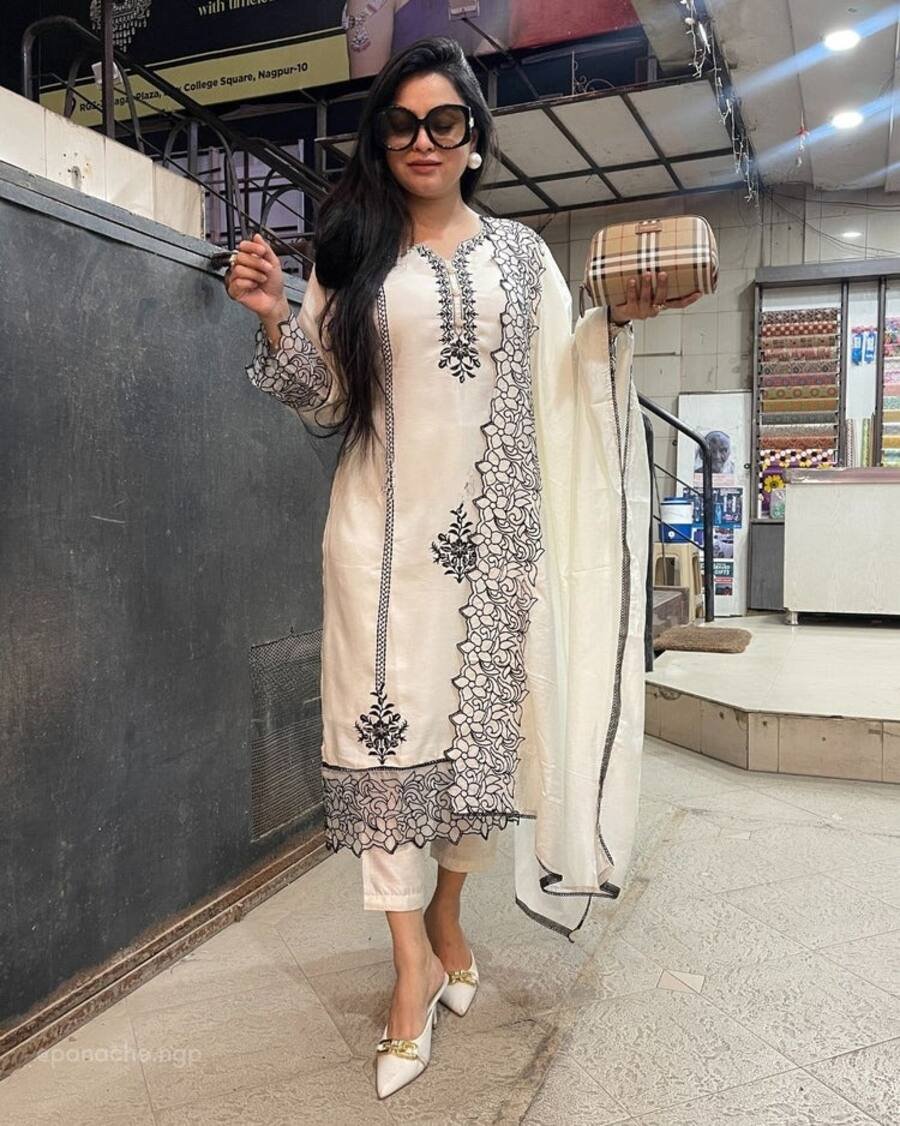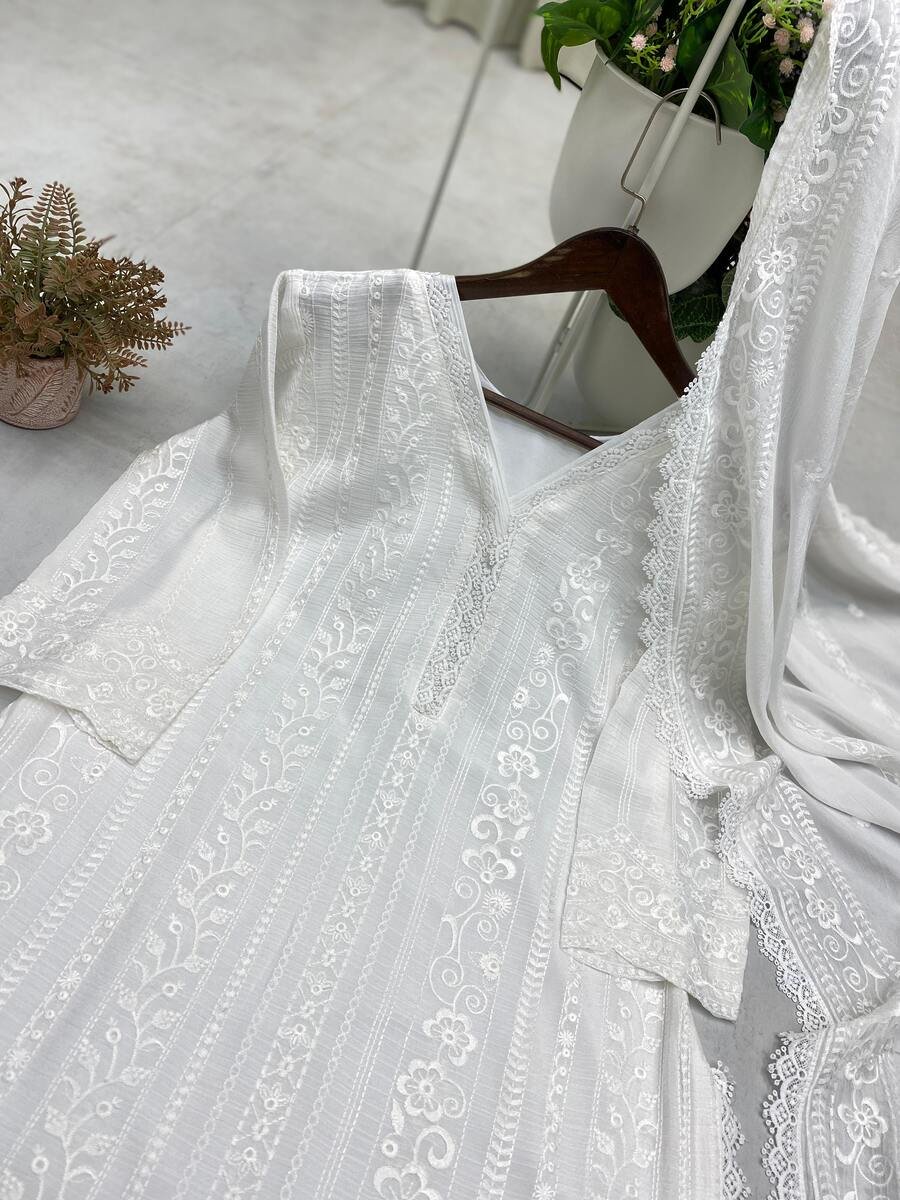 RICH LOOK CHINON COTTON THREAD EMBROIDERY WORK WITH GPO LACE WORK TOP BOTTOM WITH DUPATTA WHITE