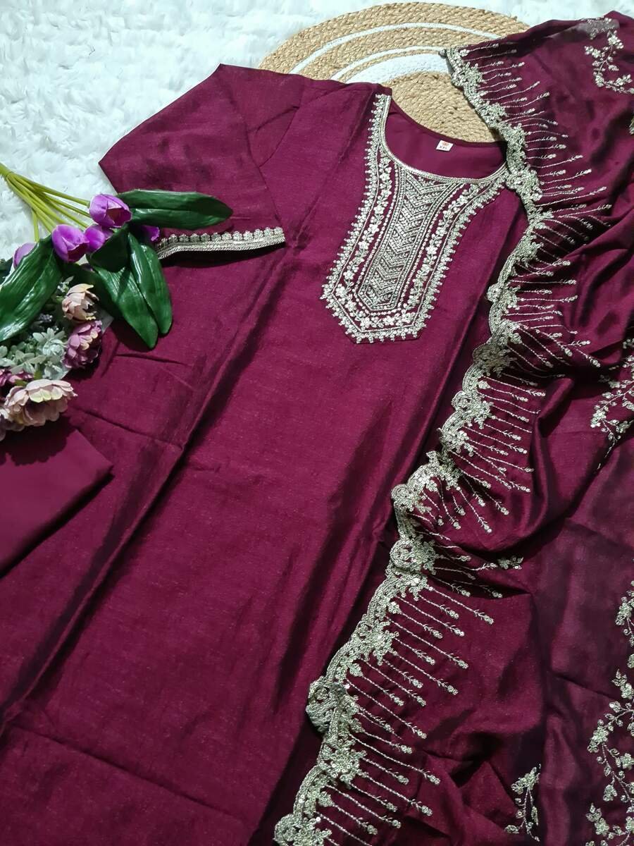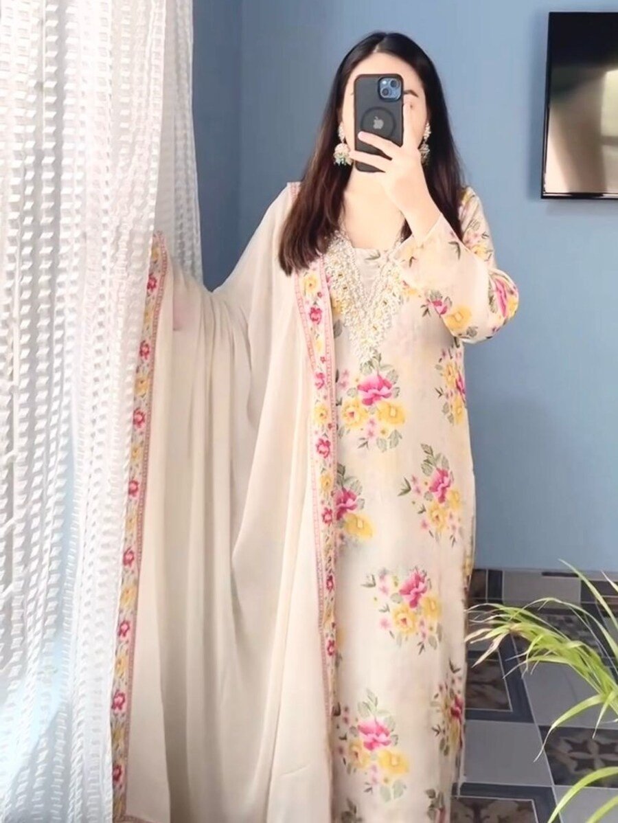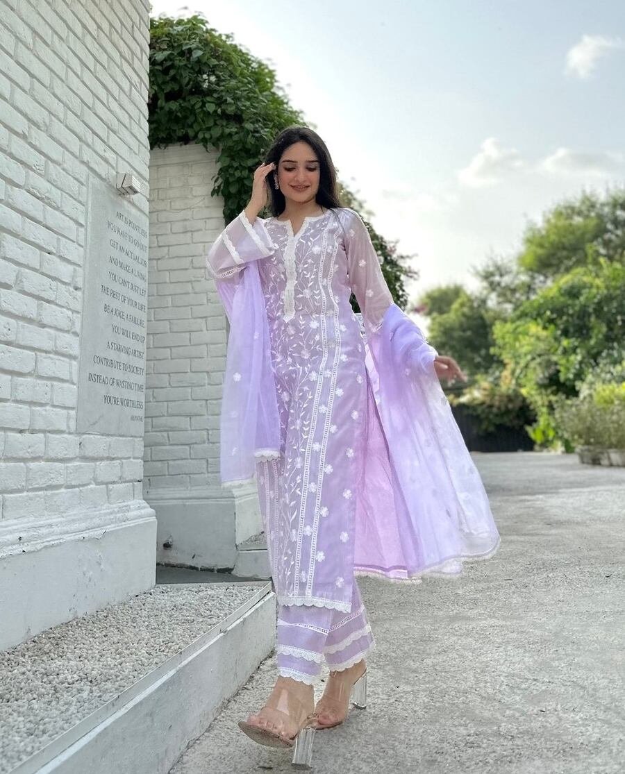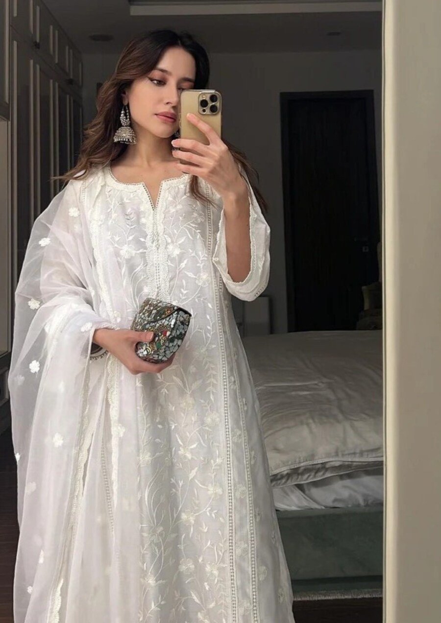 RICH LOOK CHINON COTTON THREAD EMBROIDERY WORK WITH GPO LACE WORK TOP BOTTOM WITH DUPATTA WHITE