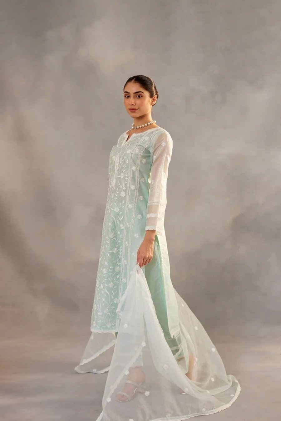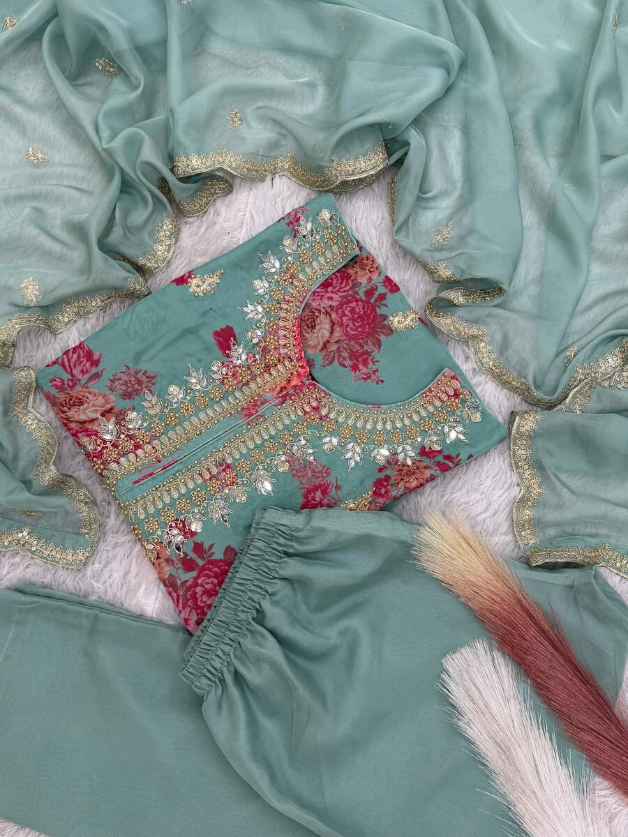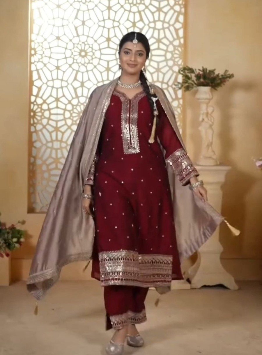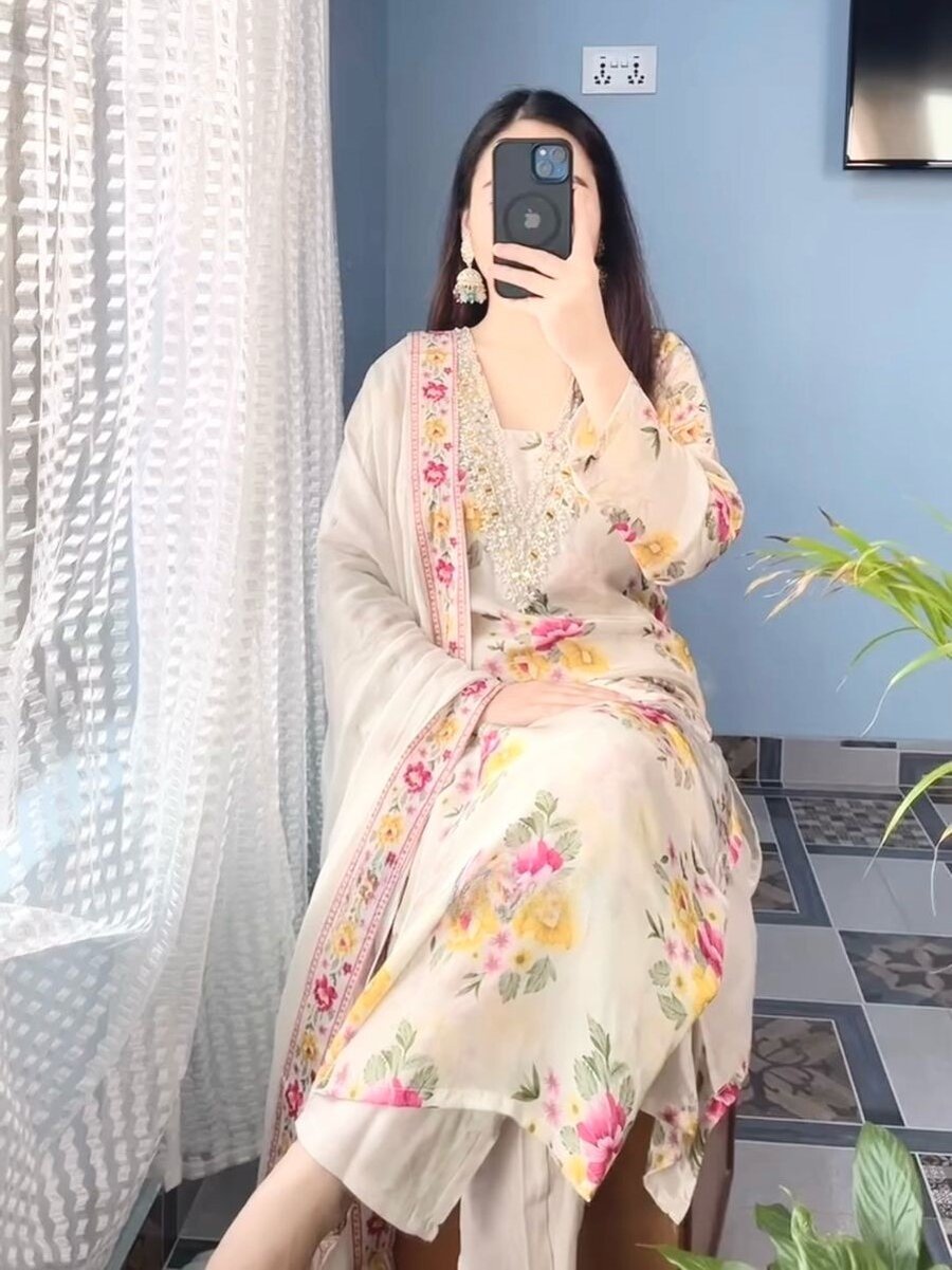 RICH LOOK CHINON COTTON THREAD EMBROIDERY WORK WITH GPO LACE WORK TOP BOTTOM WITH DUPATTA WHITE