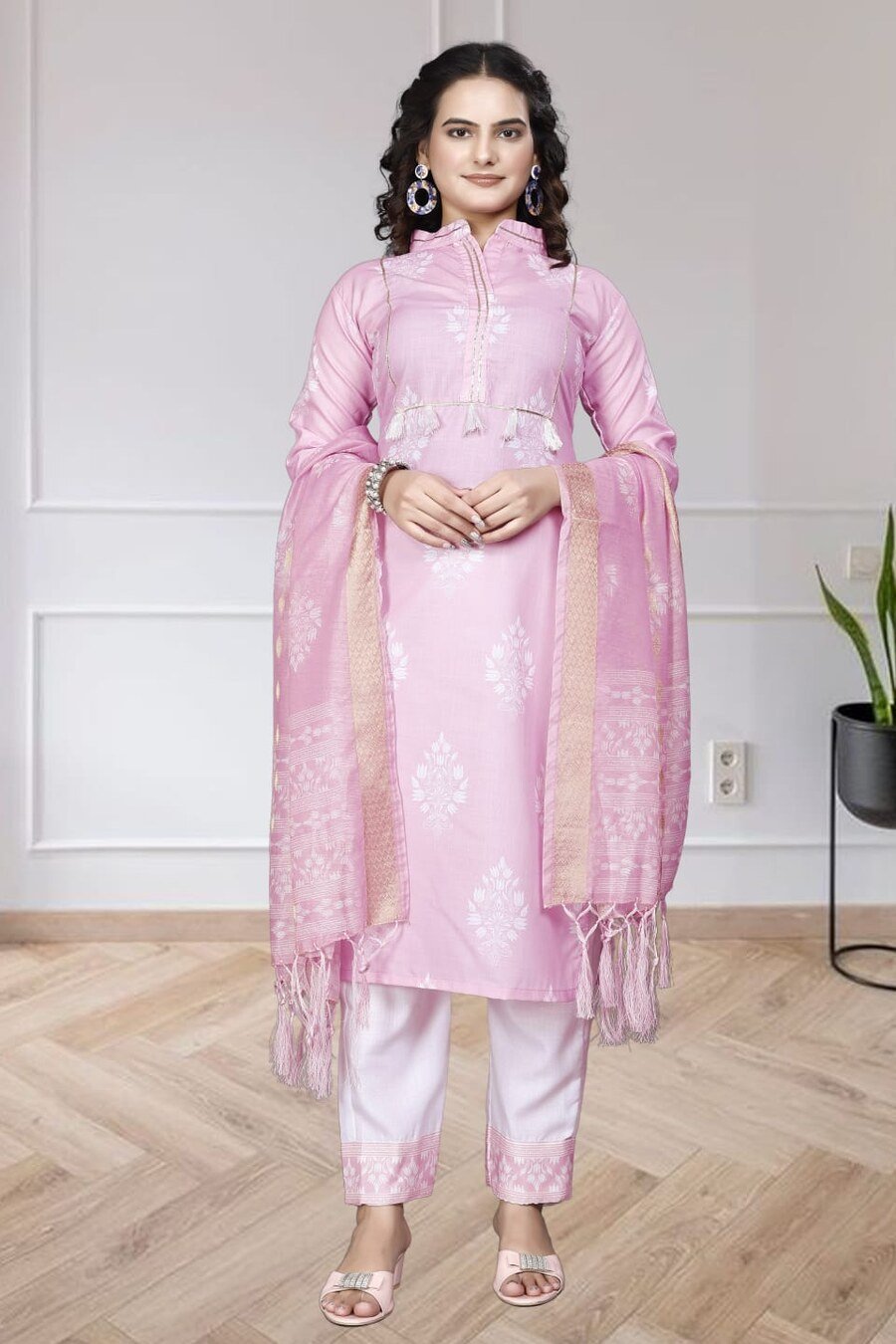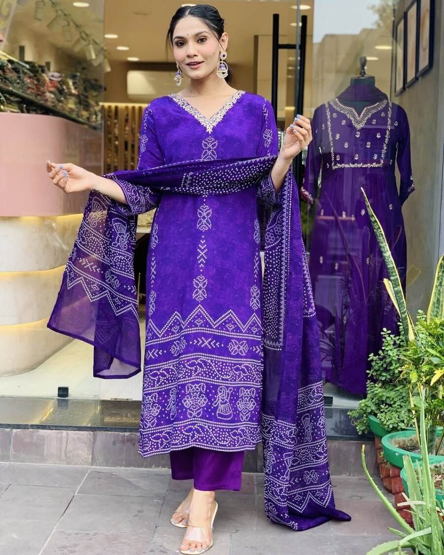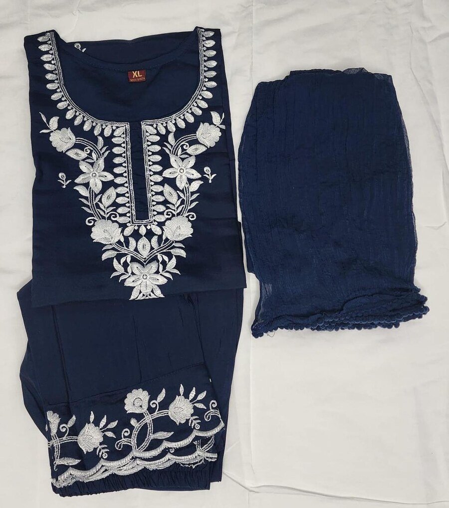 TOP FABRIC :- COTTON WITH BEAUTIFUL DIGITAL PRINT BOTTOM FABRIC :- COTTON WITH BEAUTIFUL DIGITAL PRINT DUAPPTA FABRIC :- CHANDERI PRINT WITH ZARI BORDER DUAPPTA LENGTH :- 2 METER SIZE :- M ,L ,XL, XXL ,3XL ...