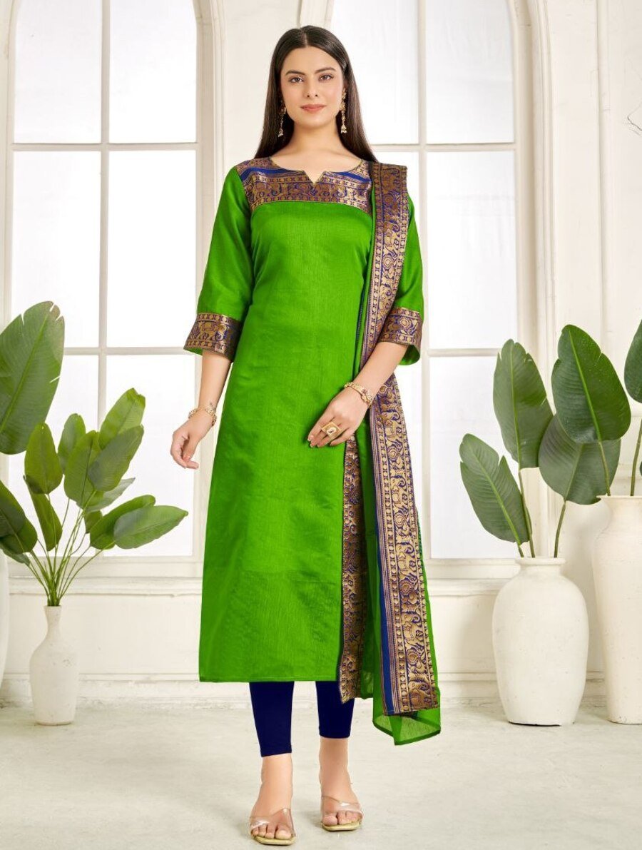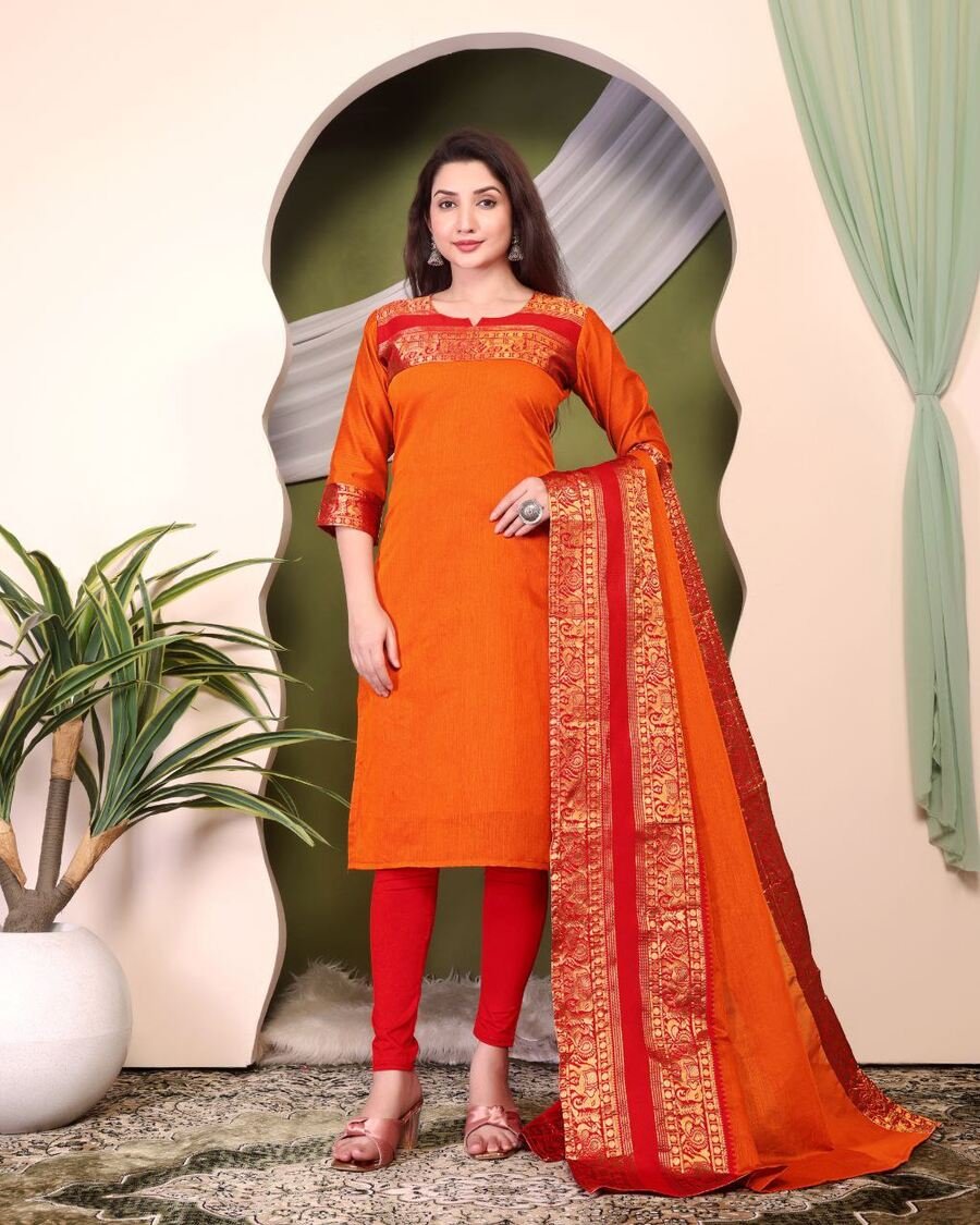 TOP : FABRIC :- KANCHI COTTON WORK :- BEAUTIFUL JACQUARD WEAVING PATTERN :- V NECK SLEEVE :- 3/4 SIZE :- S-36, M-38, L-40, XL-42, 2XL-44, 3XL-46 DUPATTA : FABRIC :- KANCHI COTTON WORK :- JACQUARD WEAVING ...