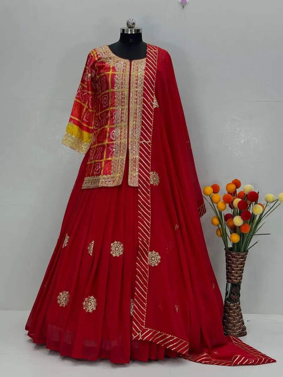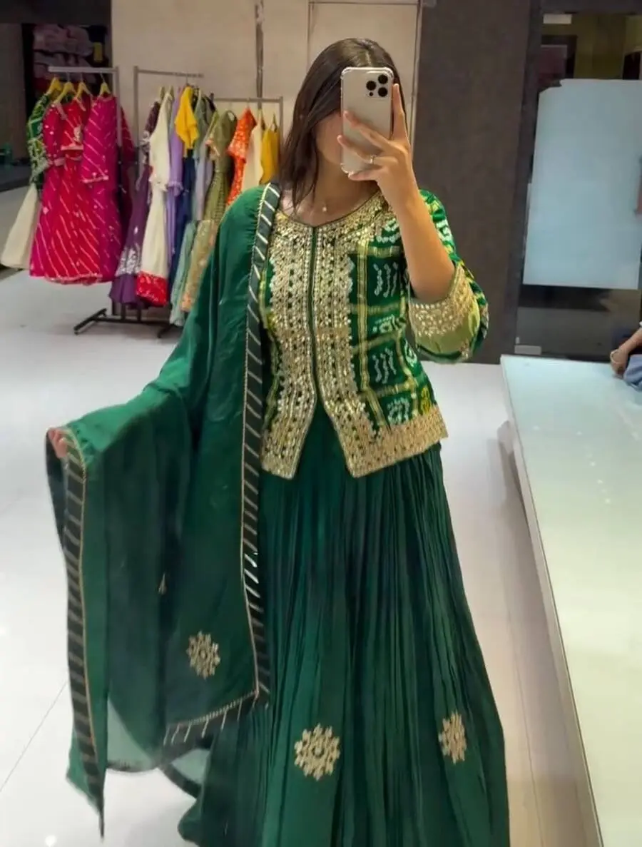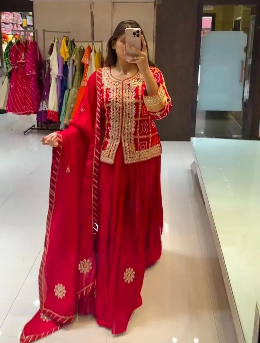 KEDIYA STYLE SHRUG(TOP) : FABRIC : BUTTERFLY NET INNER : MICRO WORK. : THREAD WITH SEQUENCE STICH. : M(38),XL(42),XXL(44) WITH 3XL MARGIN BLOUSE : FABRIC :- MICRO COTTON STICH :- FULL STICH M(38), XL(42),XXL(44) DUPATTA : ...