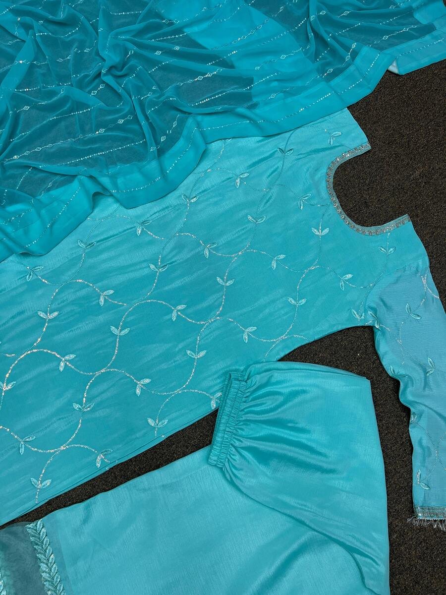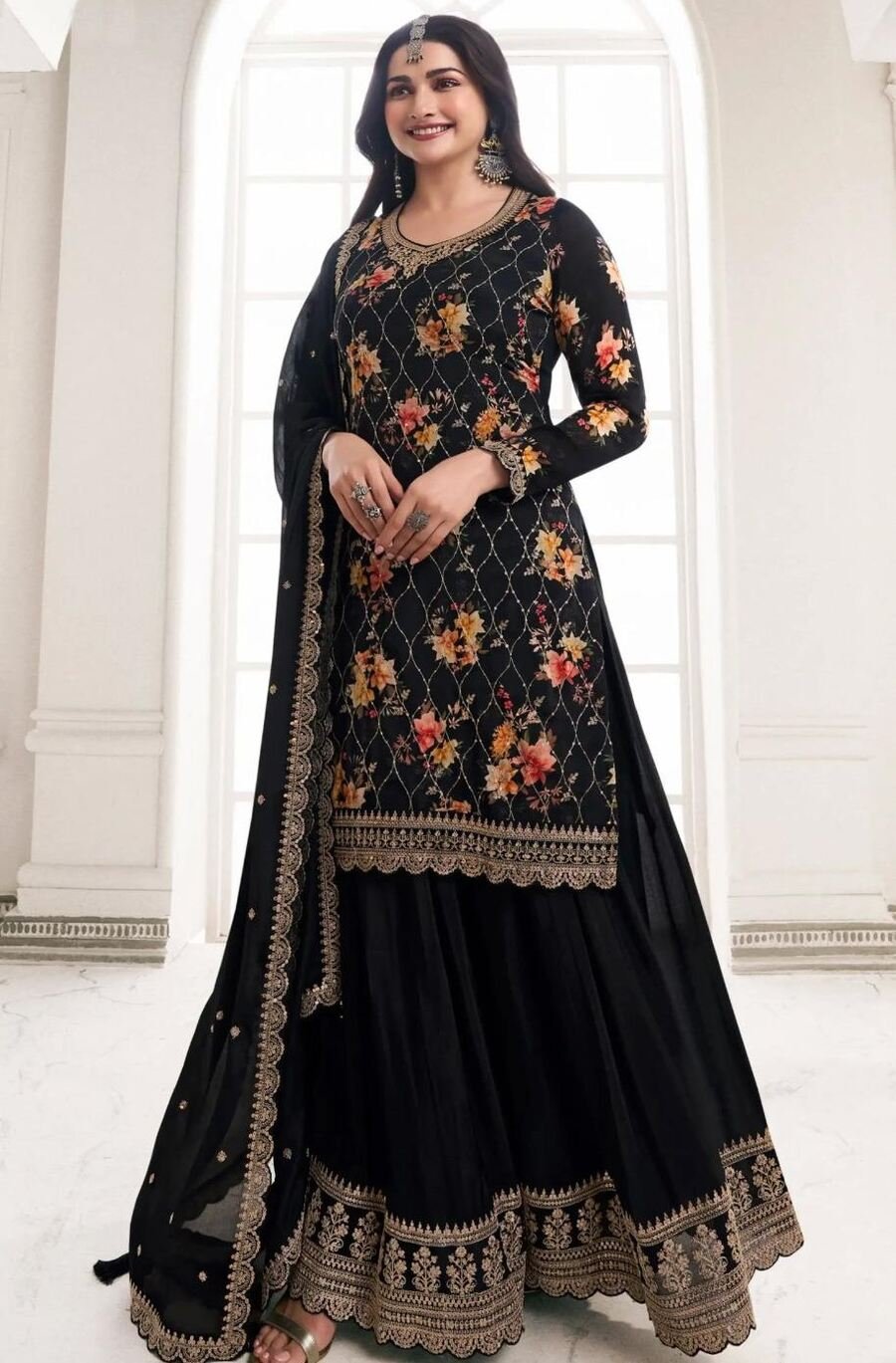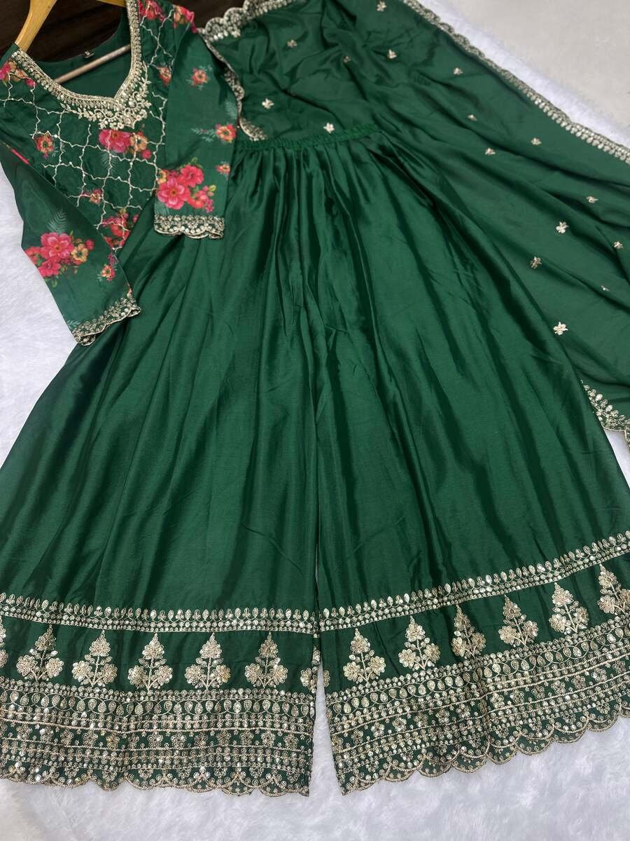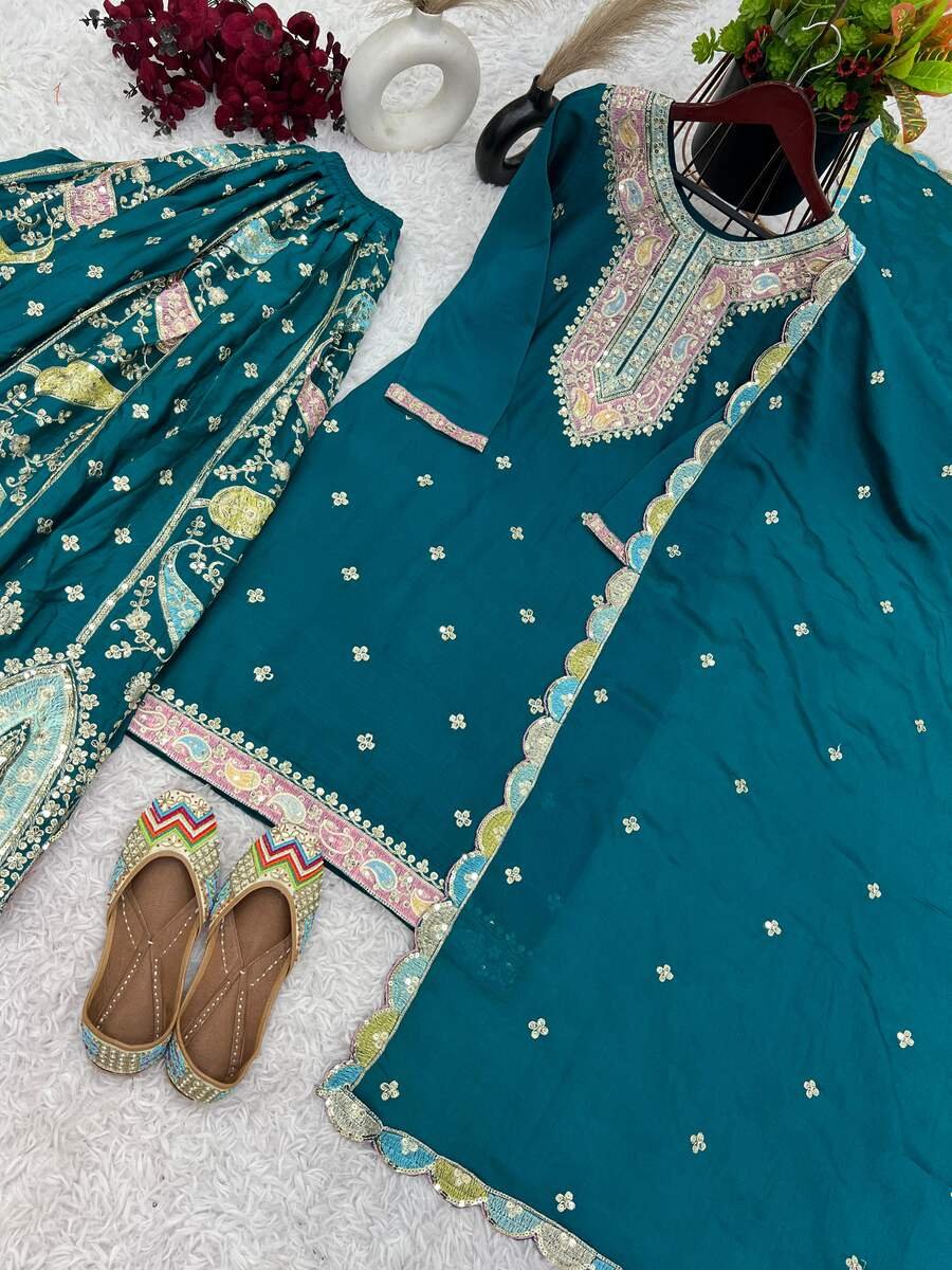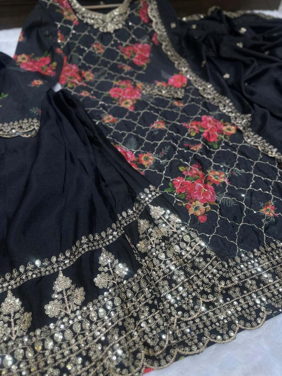 TOP FABRIC :- PURE CHINON SILK WITH MULTI THREAD EMBROIDERY SEQUENCE WORK WITH FULL SLEEVE TOP INNER :- HEAVY MICRO COTTON TOP LENGTH :- 40-41 INCH TOP SIZE : FREE SIZE XL(42) WITH XXL(44) MARGIN (FULLY ...