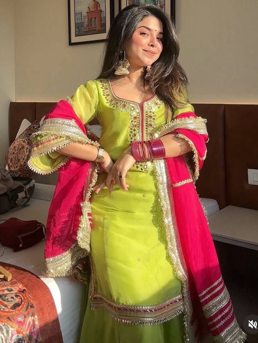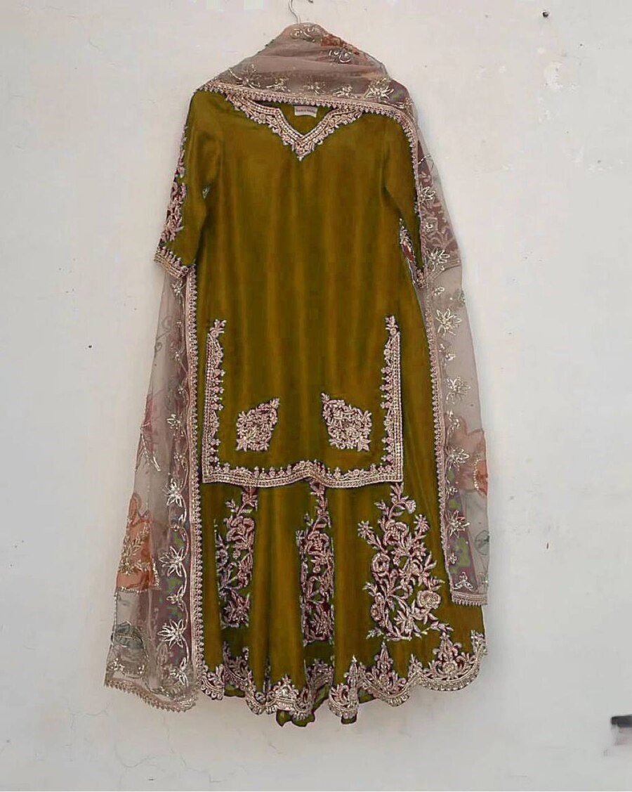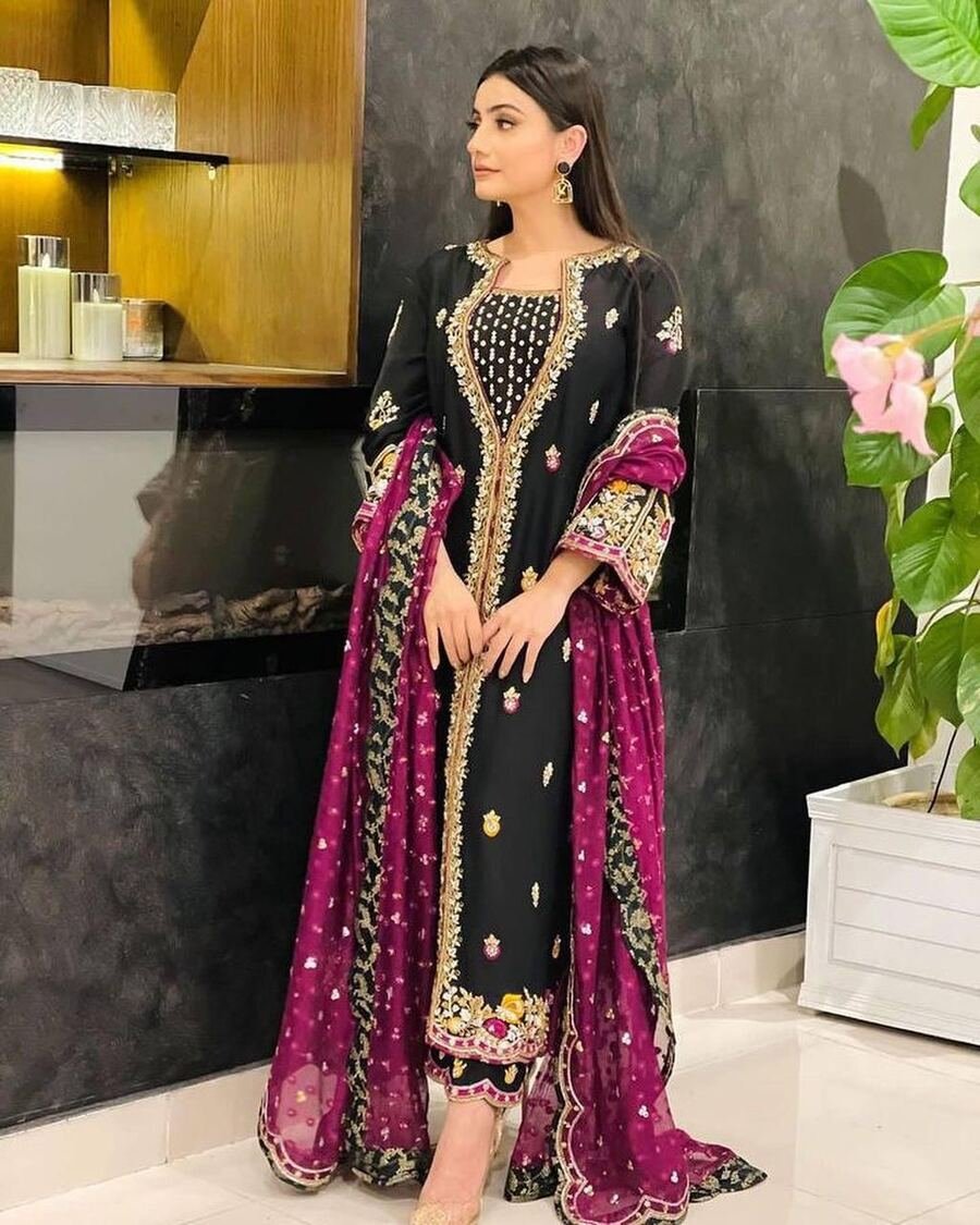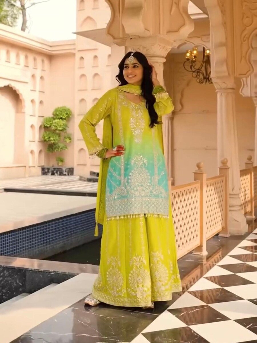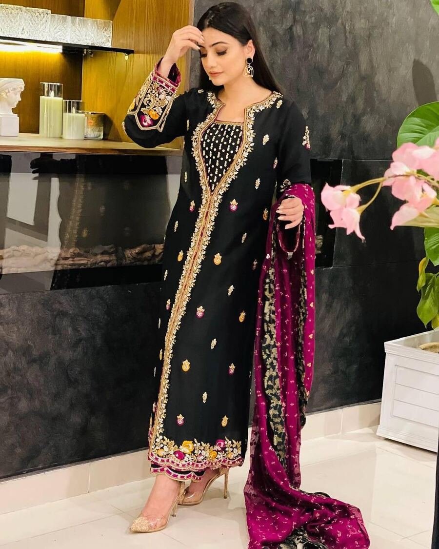 TOP FABRIC :- PURE CHINON SILK WITH MULTI THREAD EMBROIDERY SEQUENCE WORK WITH FULL SLEEVE TOP INNER :- HEAVY MICRO COTTON TOP LENGTH :- 40-41 INCH TOP SIZE : FREE SIZE XL(42) WITH XXL(44) MARGIN (FULLY ...