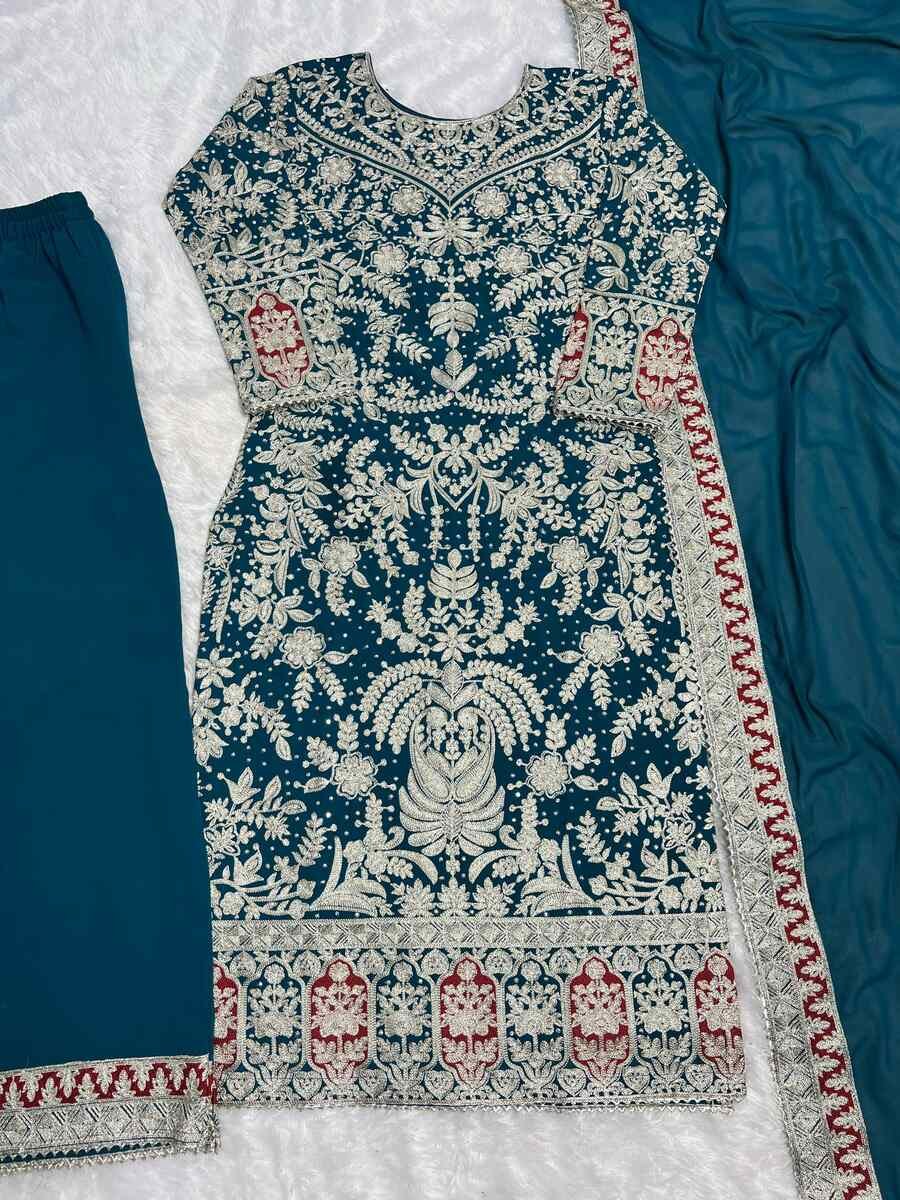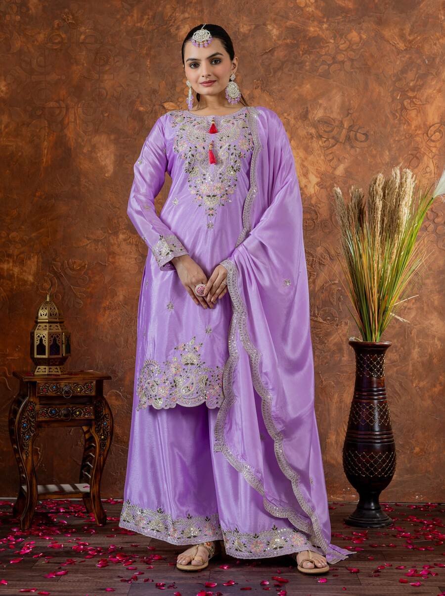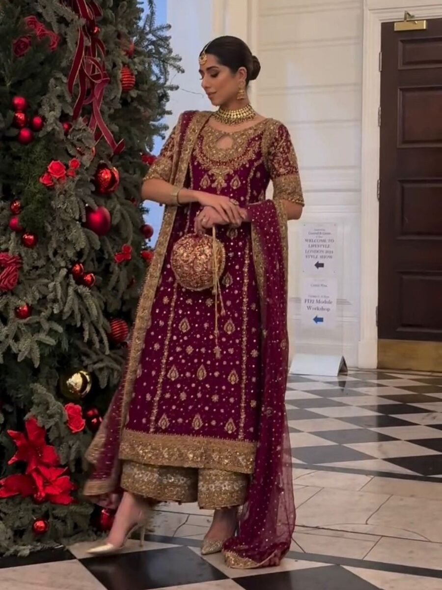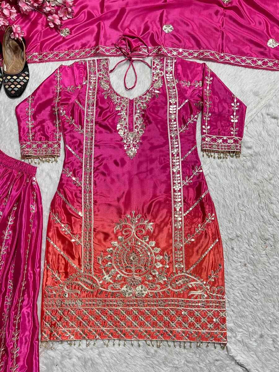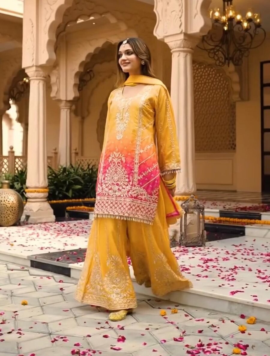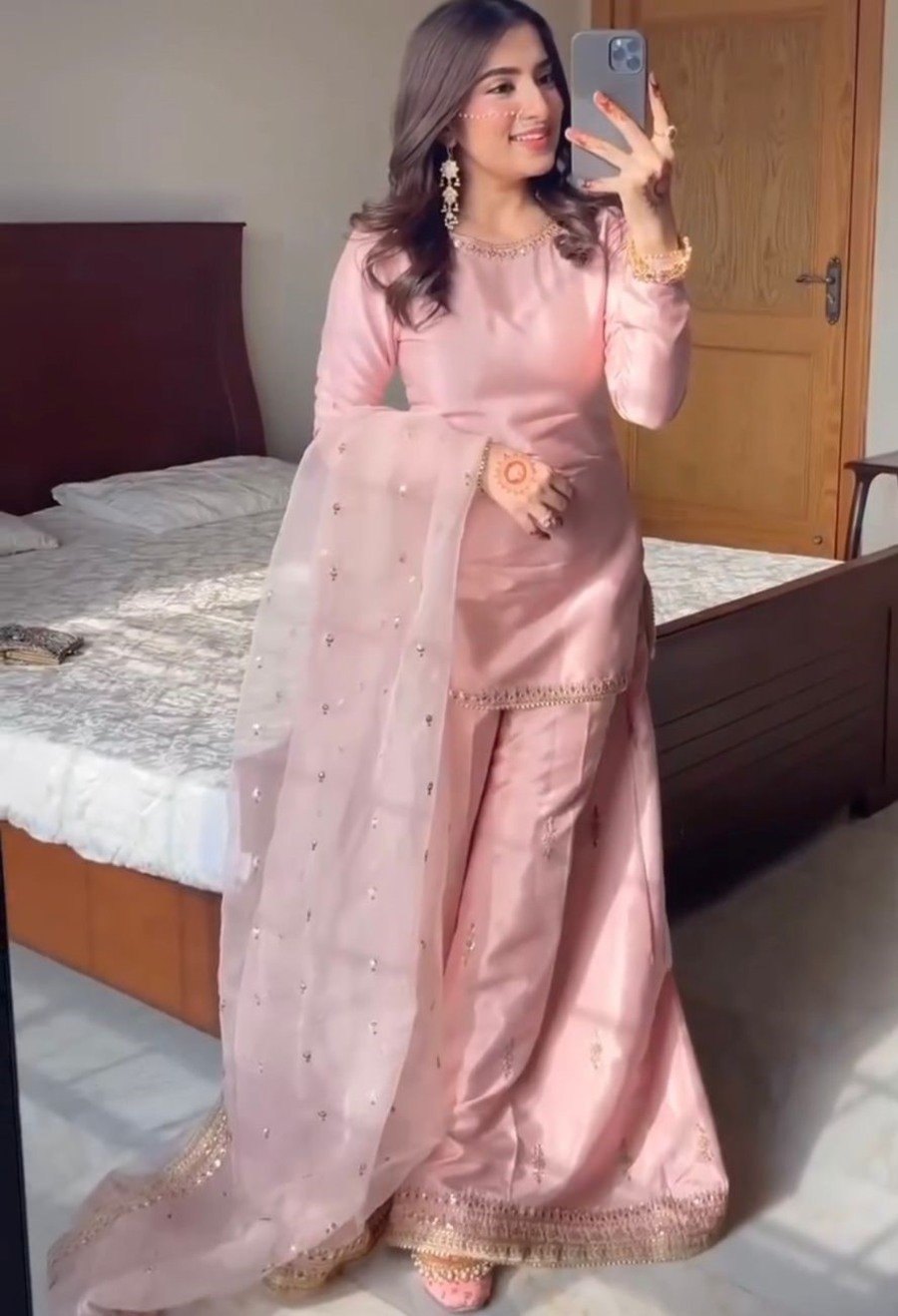 DESIGNER CHINON THREAD EMBROIDERY SEQUENCE WORK TOP PALAZZO WITH DUPATTA RED