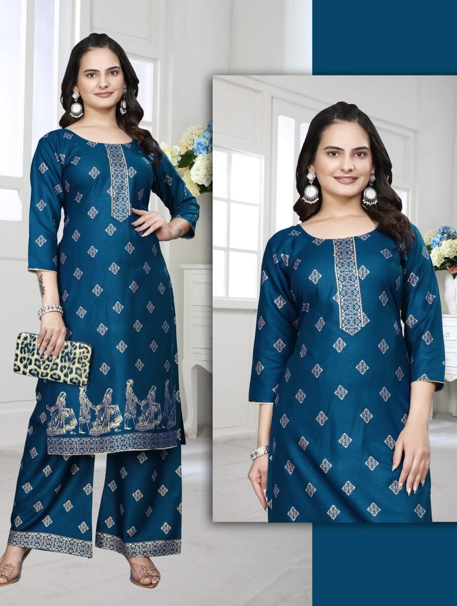 MOST PICKED RAYON DIGITAL PRINTED TOP WITH PALAZZO BLUE