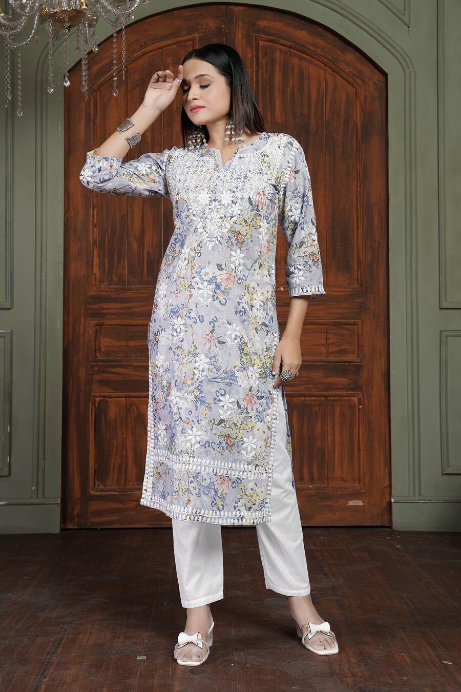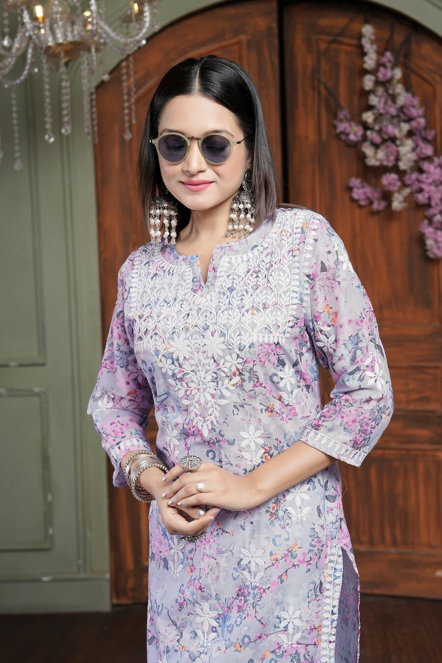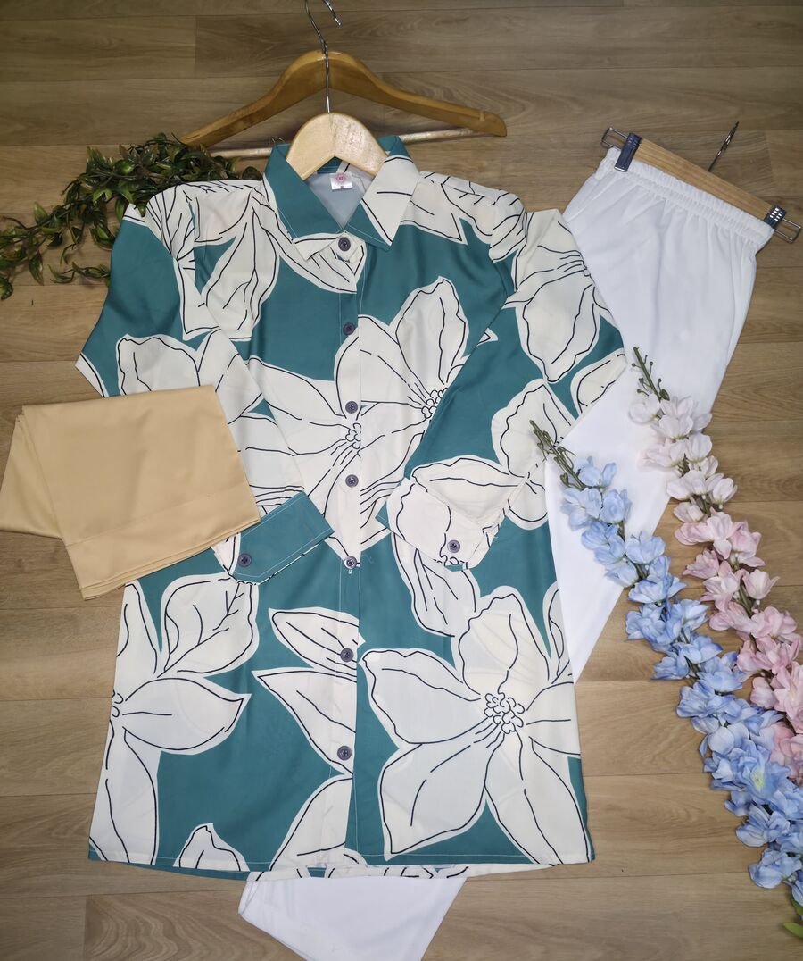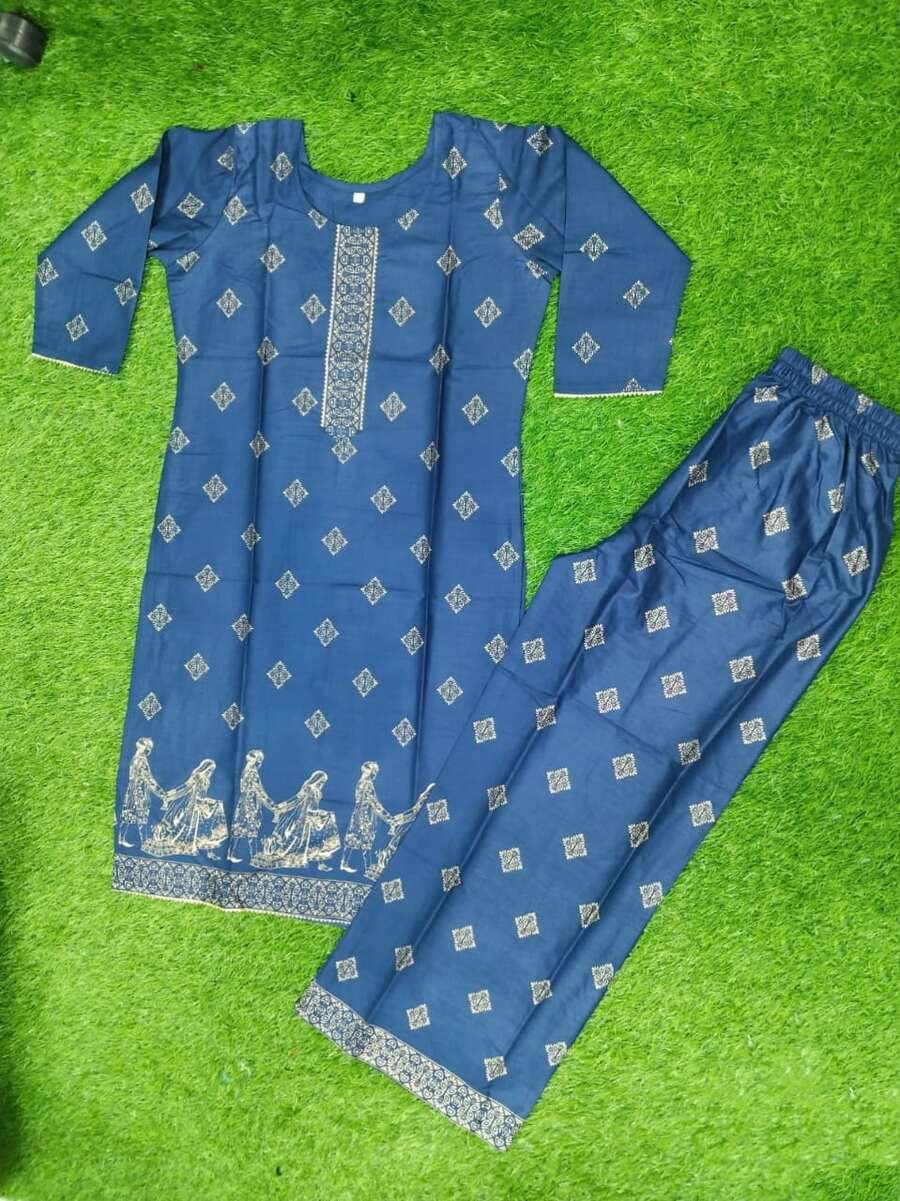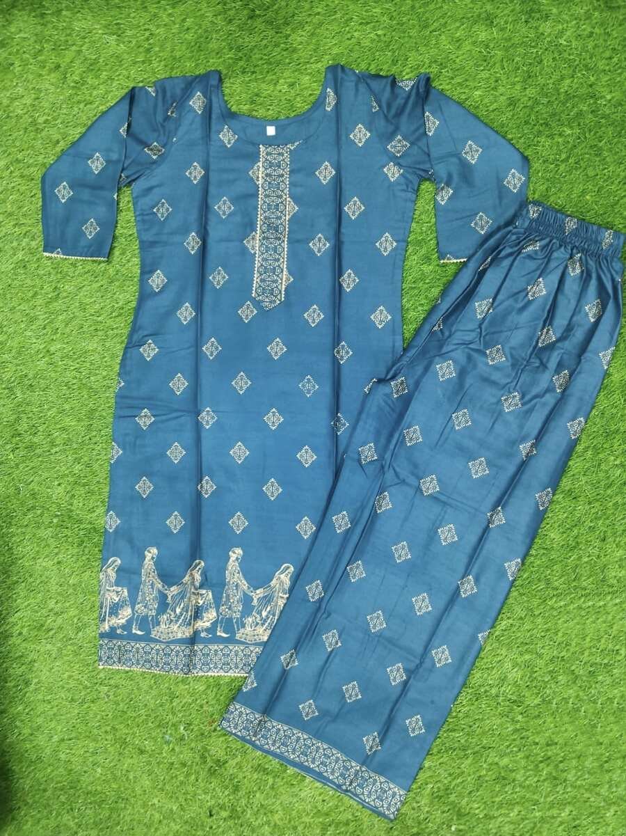 TOP PATTERN : PRINTED TOP FABRIC : COTTON TOP STYLE : REGULAR TOP LENGTH : CALF LENGTH TOP SHAPE : STRAIGHT NECK : V- NECK SLEEVE LENGTH : 3/4 SLEEVE SLIT DETAIL : SLIDE SLIT BOTTOM ...