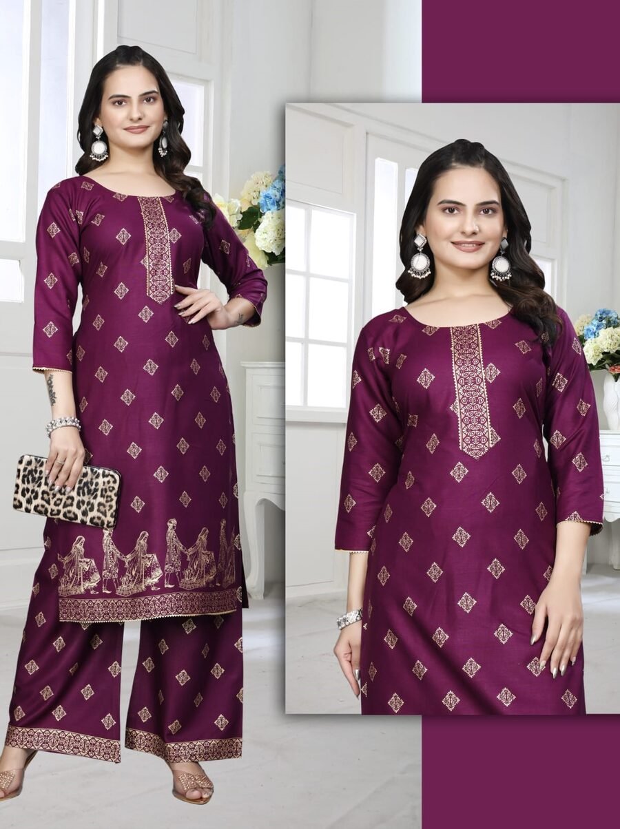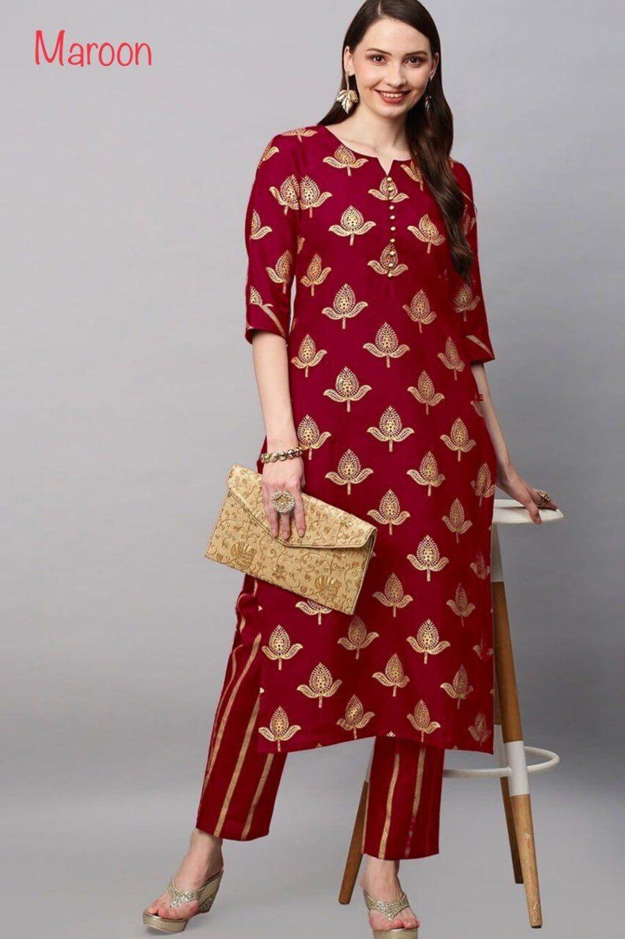 NEW ARIIVAL RAYON FOIL PRINTED TOP BOTTOM MAROON