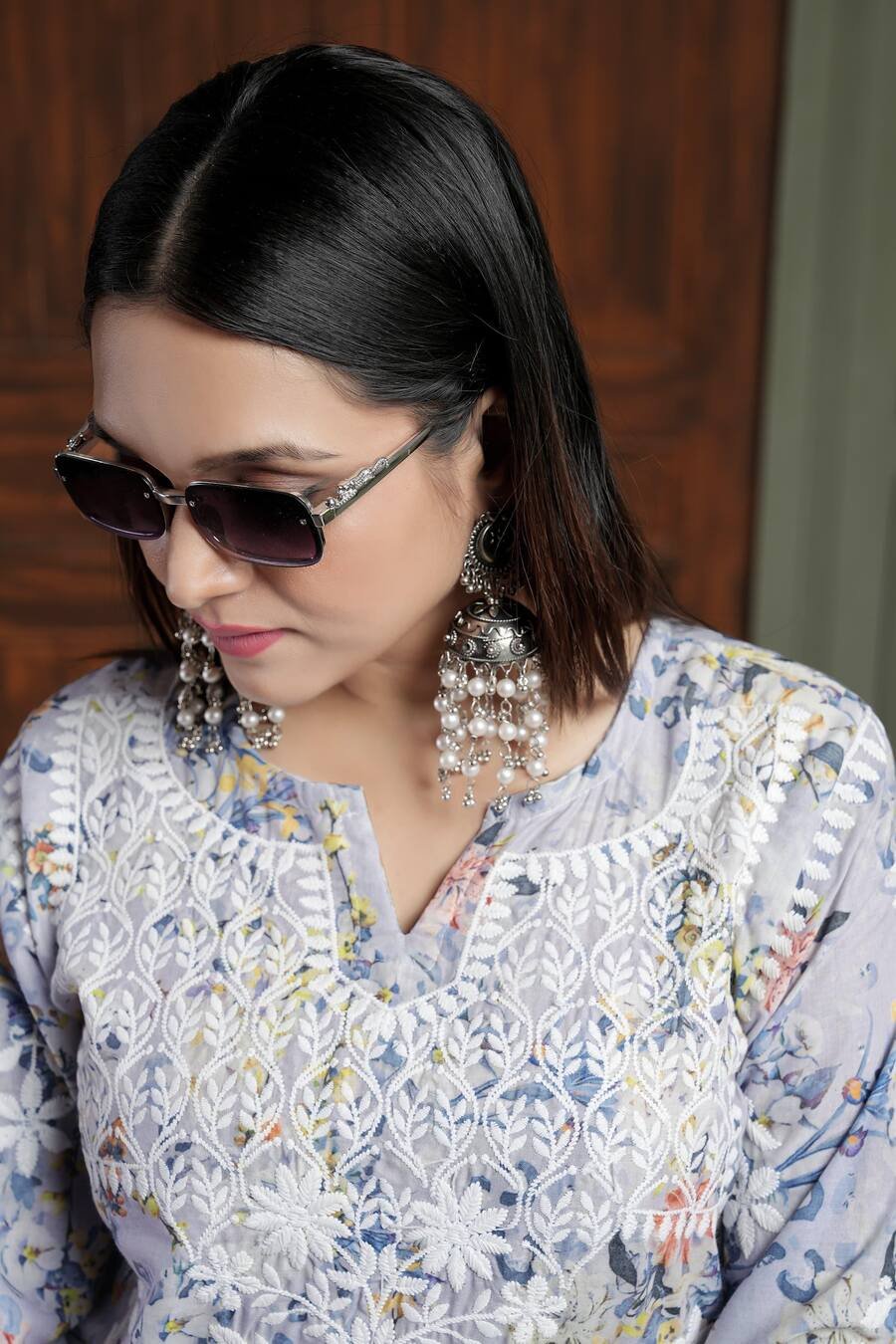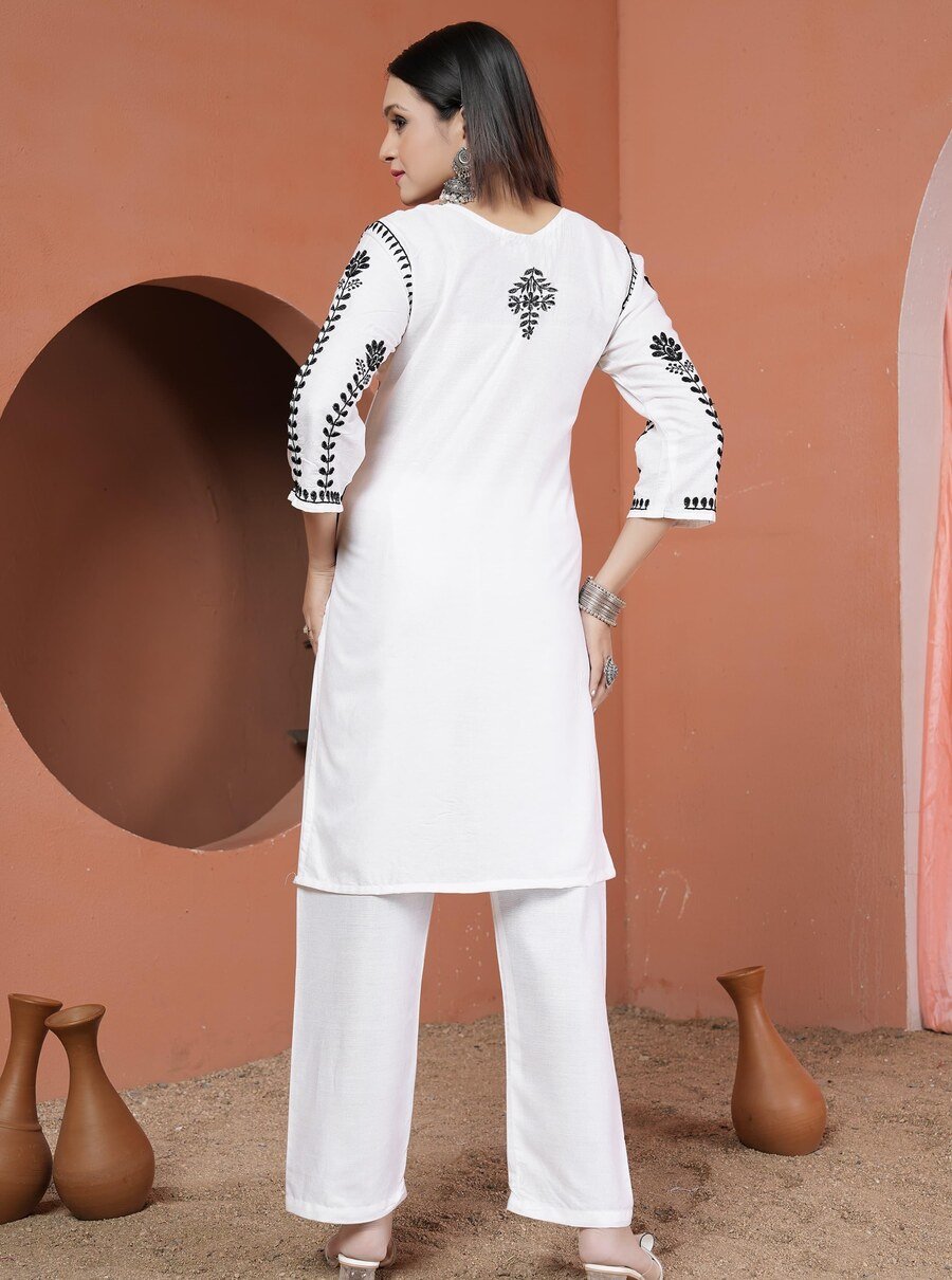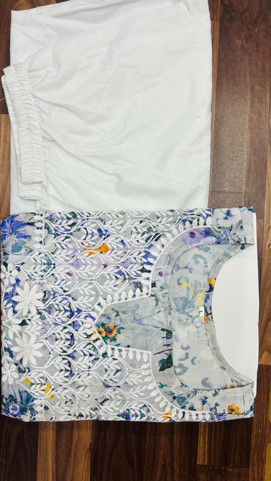 FASHIONABLE COTTON PRINTED TOP WITH PENT SET WHITE
