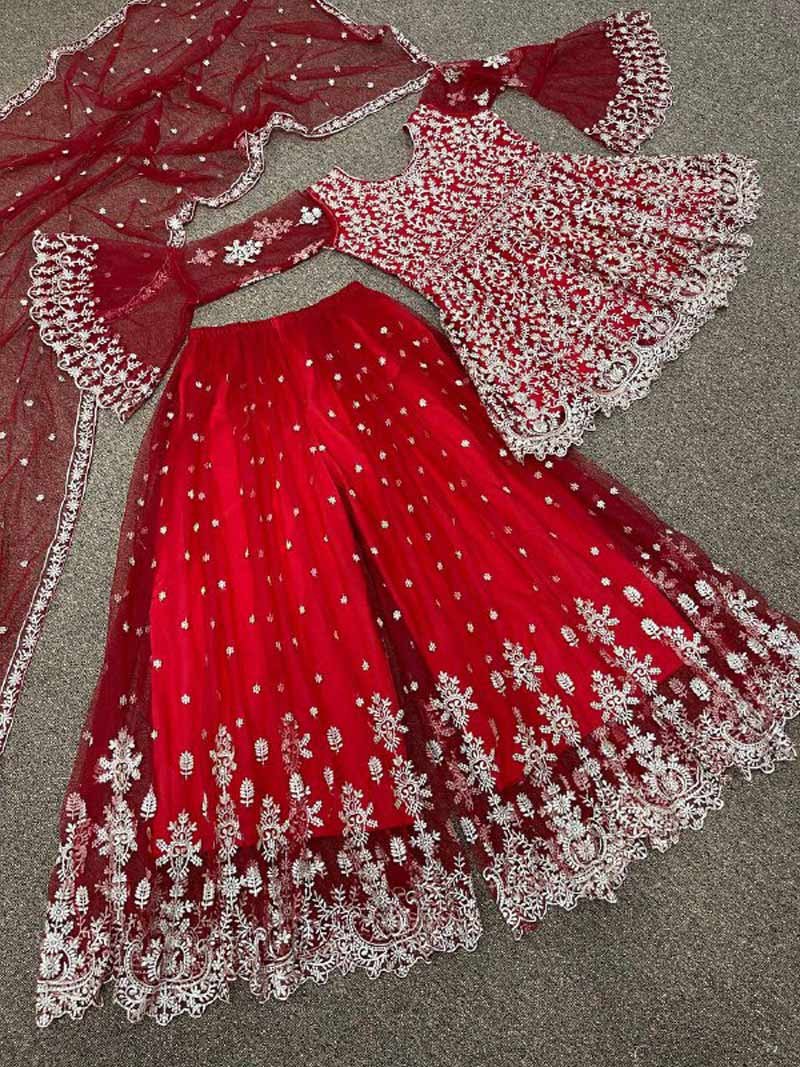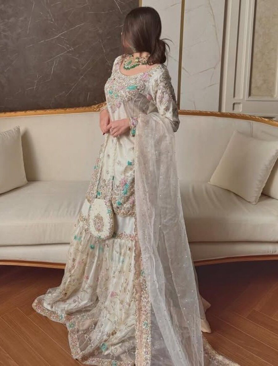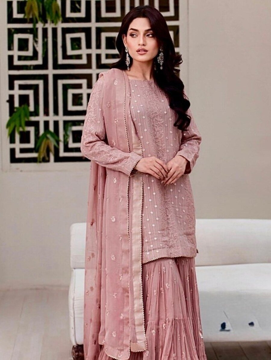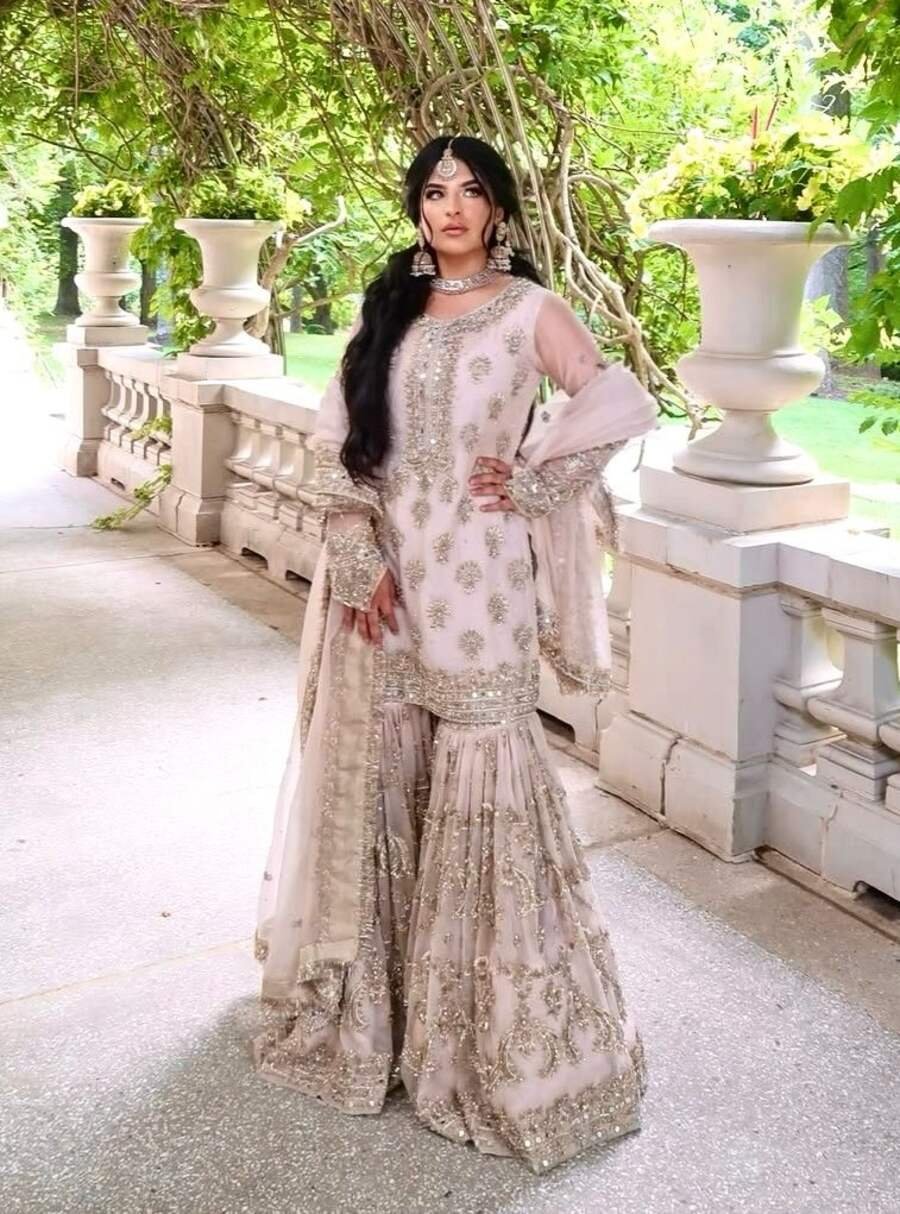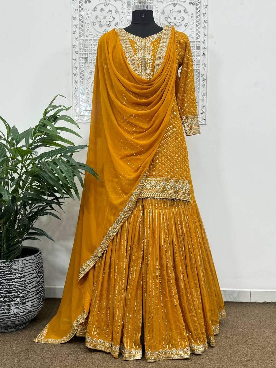 TOP : TOP FABRIC : HEAVY CHINON TOP WORK : HEAVY EMBROIDERY SEQUENCE WORK TOP INNRT : SOFT SILK TOP SIZE : MAX UP TO 44 INCH TOP LENGTH : 32 INCH SHARARA : SHARARA FABRIC ...