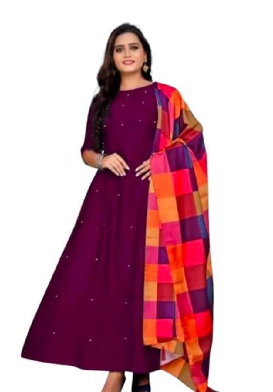 NEW ARRIVAL POLY CARPE MOTI WORK GOWN WITH DUPATTA WINE