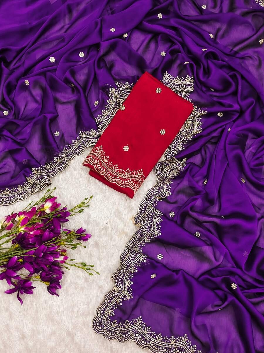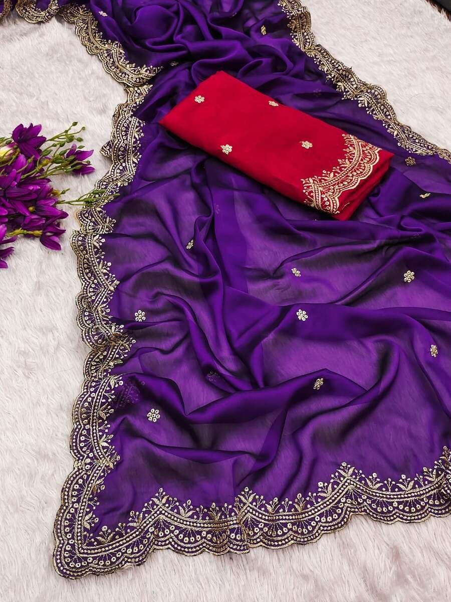 SAREE FABRIC :- BLACK RANGOLI CHIFFON SAREE WITH EMBROIDERY WORK