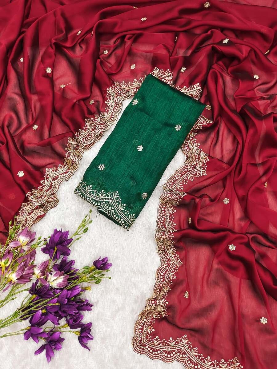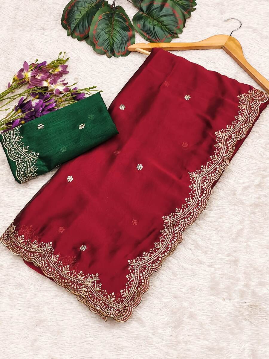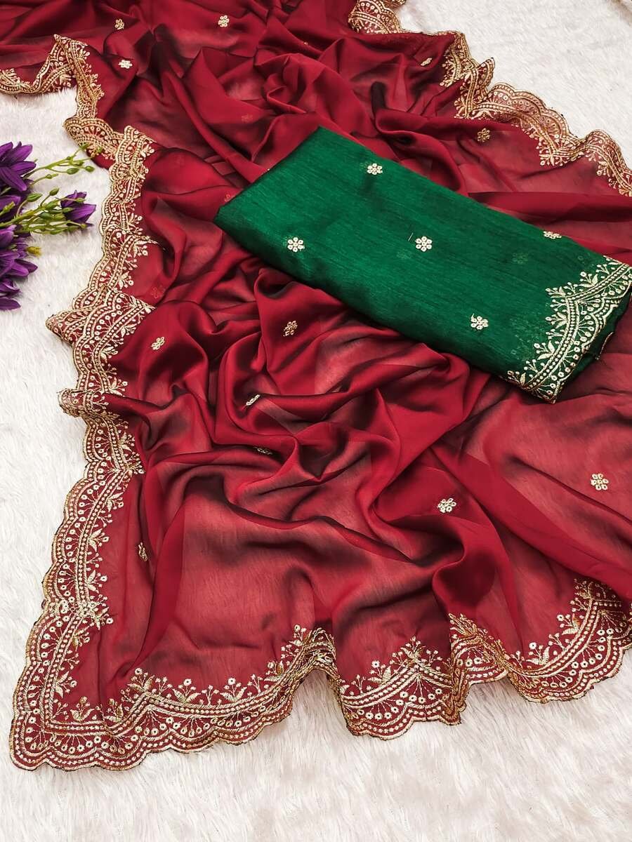 ATTRACTIVE BLACK RANGOLI CHIFFON EMBROIDERY WORK SAREE WITH UNSTITCHED BLOUSE RED