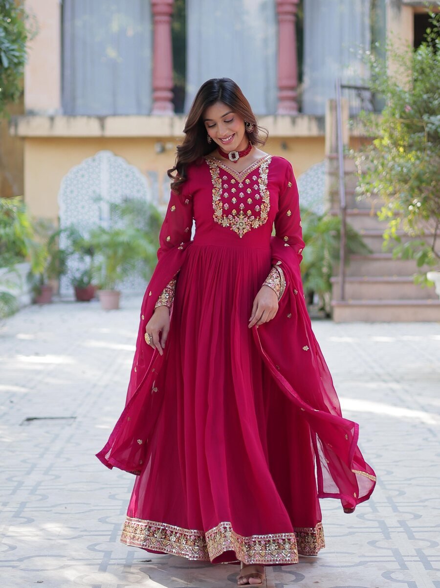 FABRIC & WORK :- FAUX BLOOMING GEORGETTE WITH RICH SEQUENCE EMBROIDERED WORK