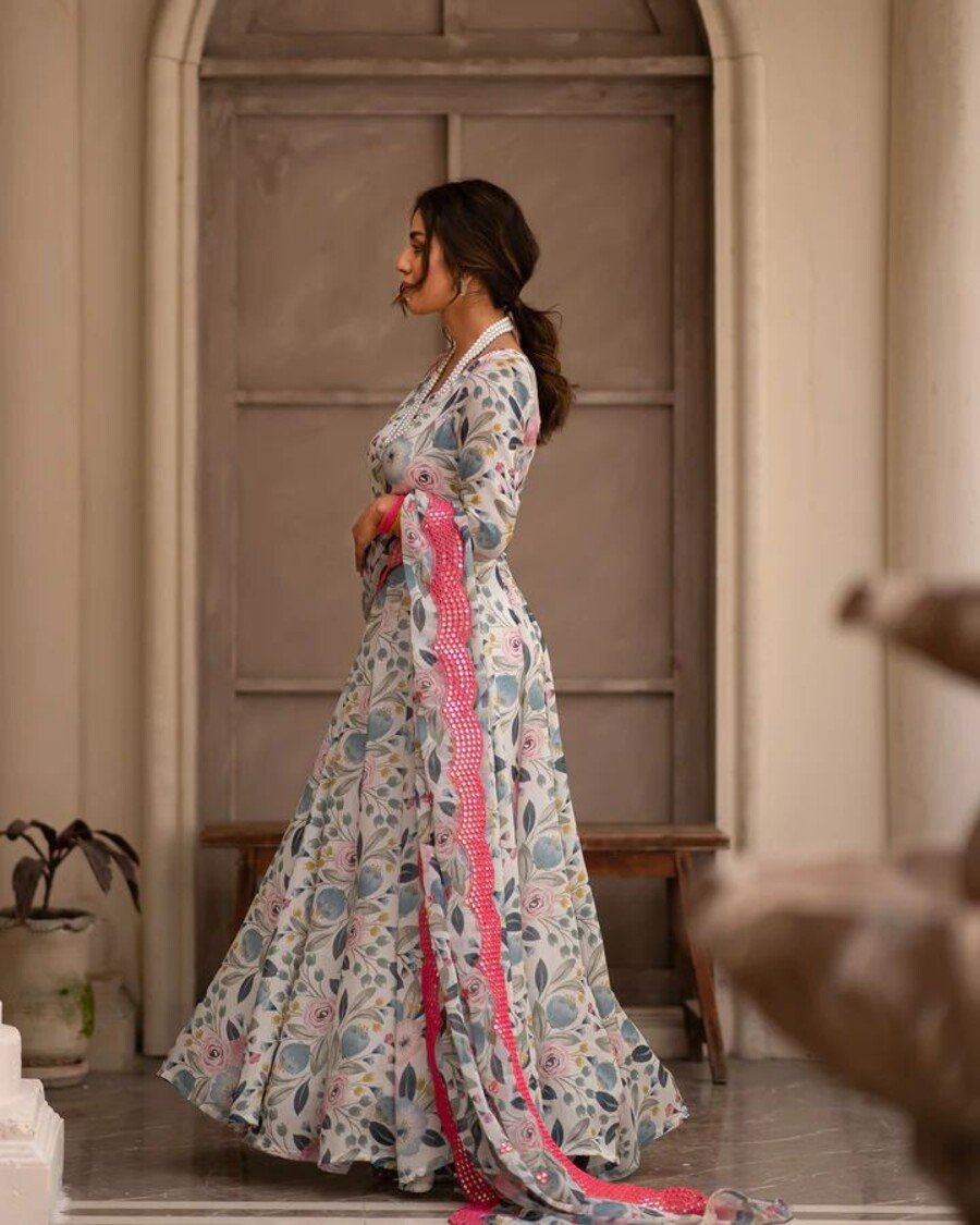 FABRIC :- CHINON FEBRIC WITH 9MM EMBROIDERY WORK