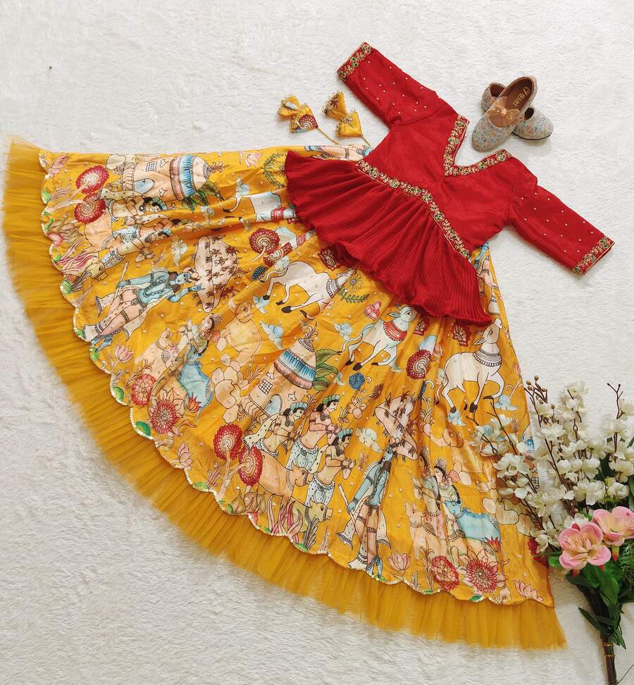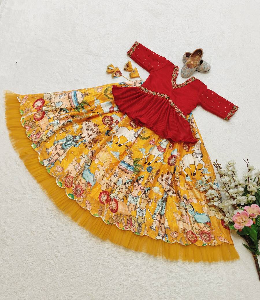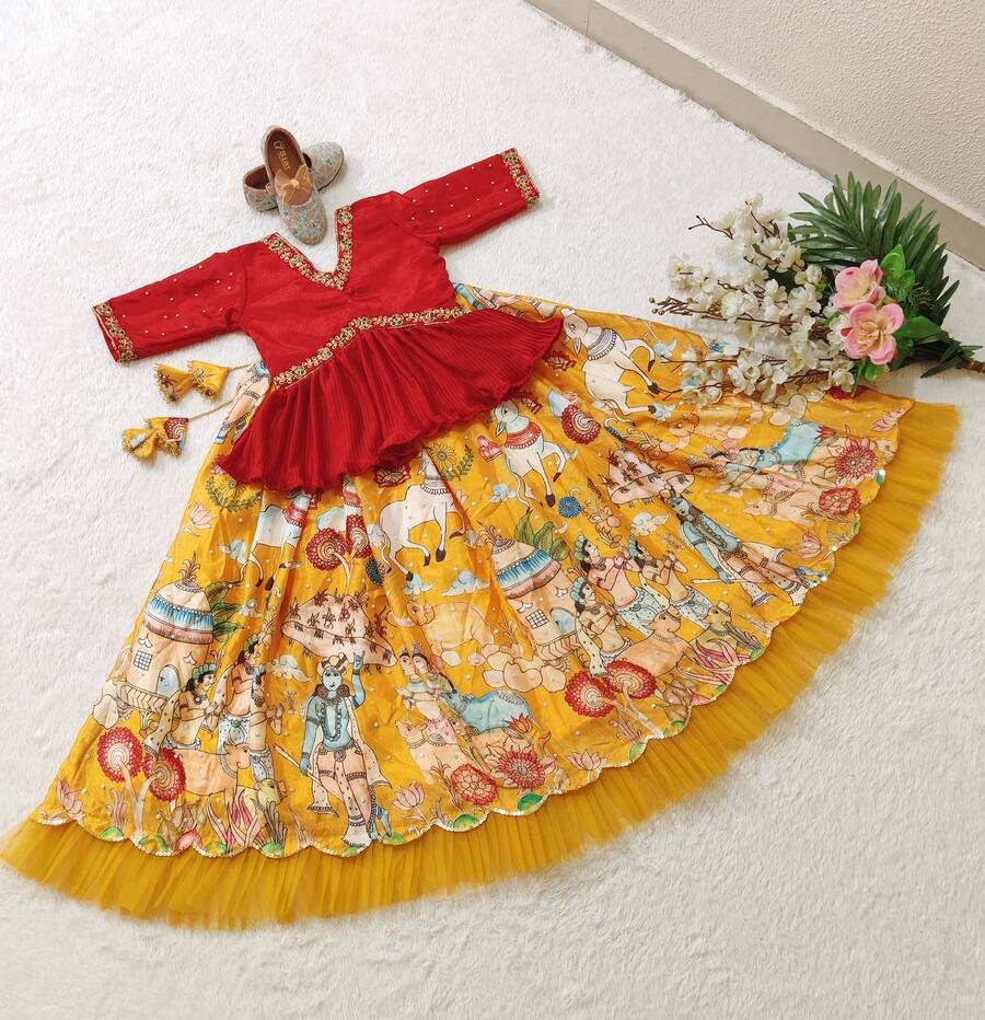 LEHENGA FABRIC :- CHINON SILK WITH SEQUENCE EMBROIDERY AND HAND WORK AND BEAUTIFUL PRINTED BORDER AND FILL BORDER DESIGN
