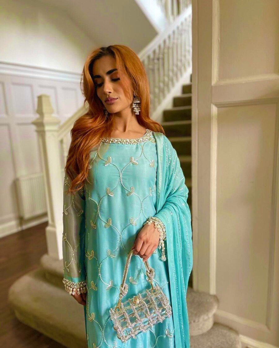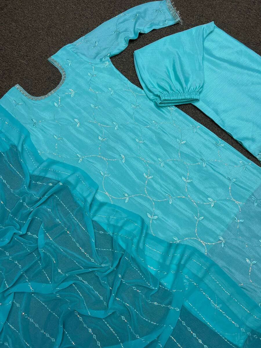 PALAZZO FABRIC :- PURE CHINON SILK AND ORGANZA SILK WITH EMBROIDERY AND SEQUINS WORK