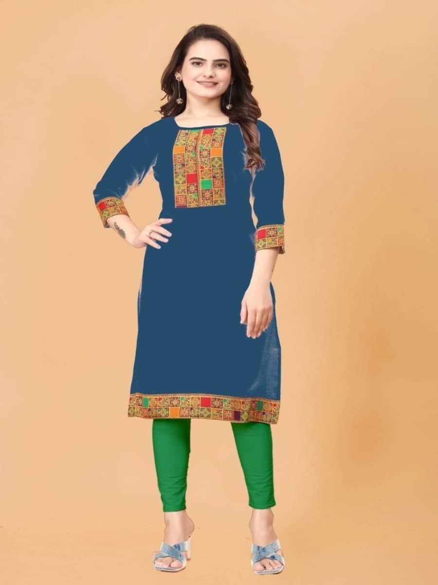 ATTRACTIVE COTTON FLEX LACE WORK READY TO WEAR KURTI TEAL