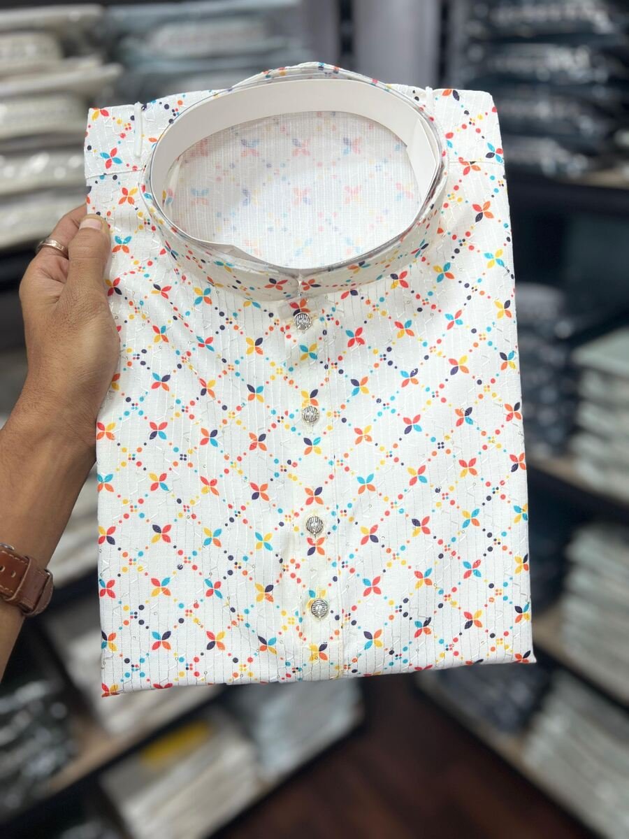 ATTRACTIVE COTTON SEQUENCE WORK AND PRINT WORK KURTA WITH PAYJAMA WHITE