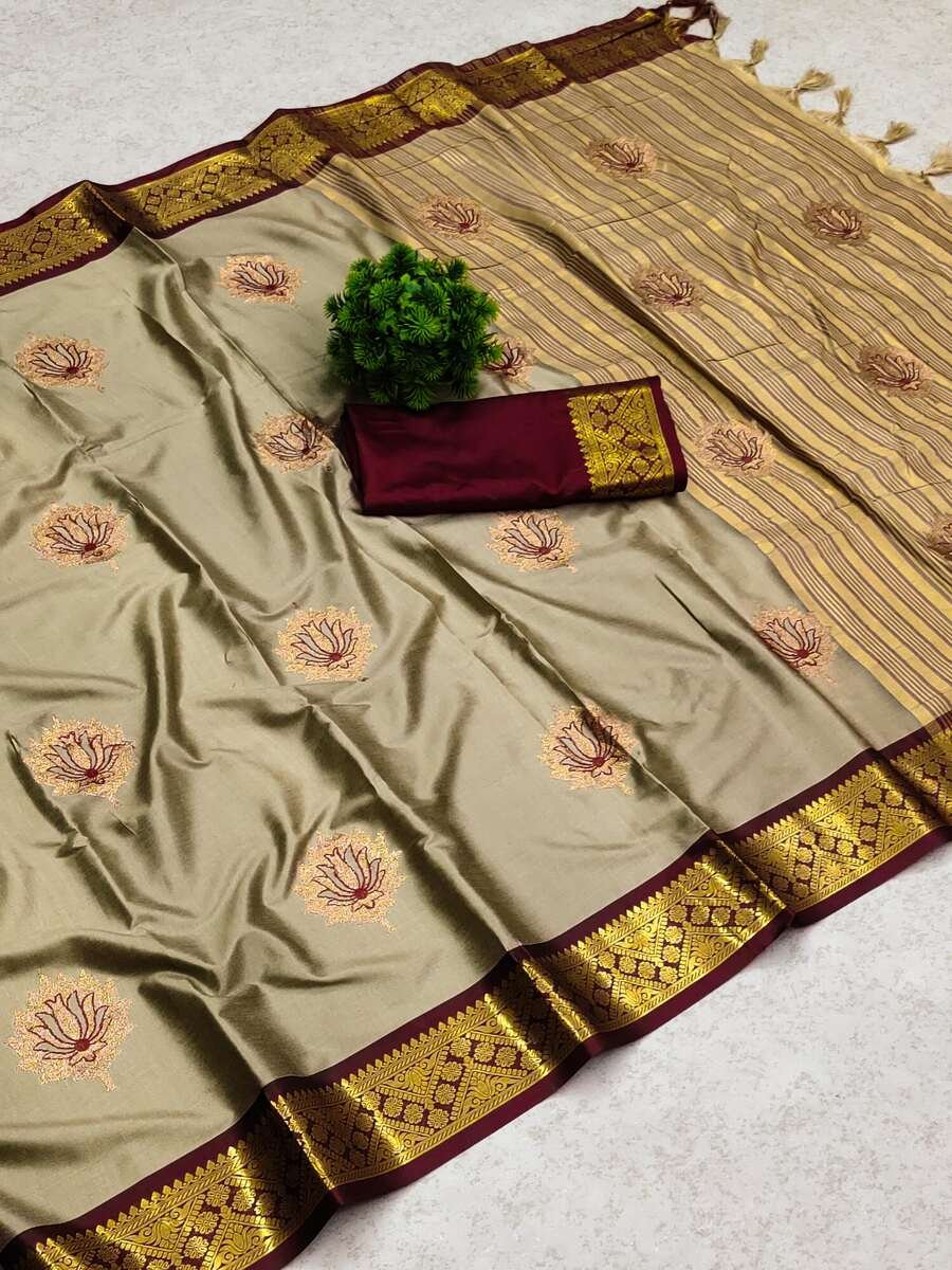SAREE FABRIC : PURE MERCERISED COTTON SILK IN EXCLUSIVE BORDER DESIGN WITH EMBROIDERY WORK