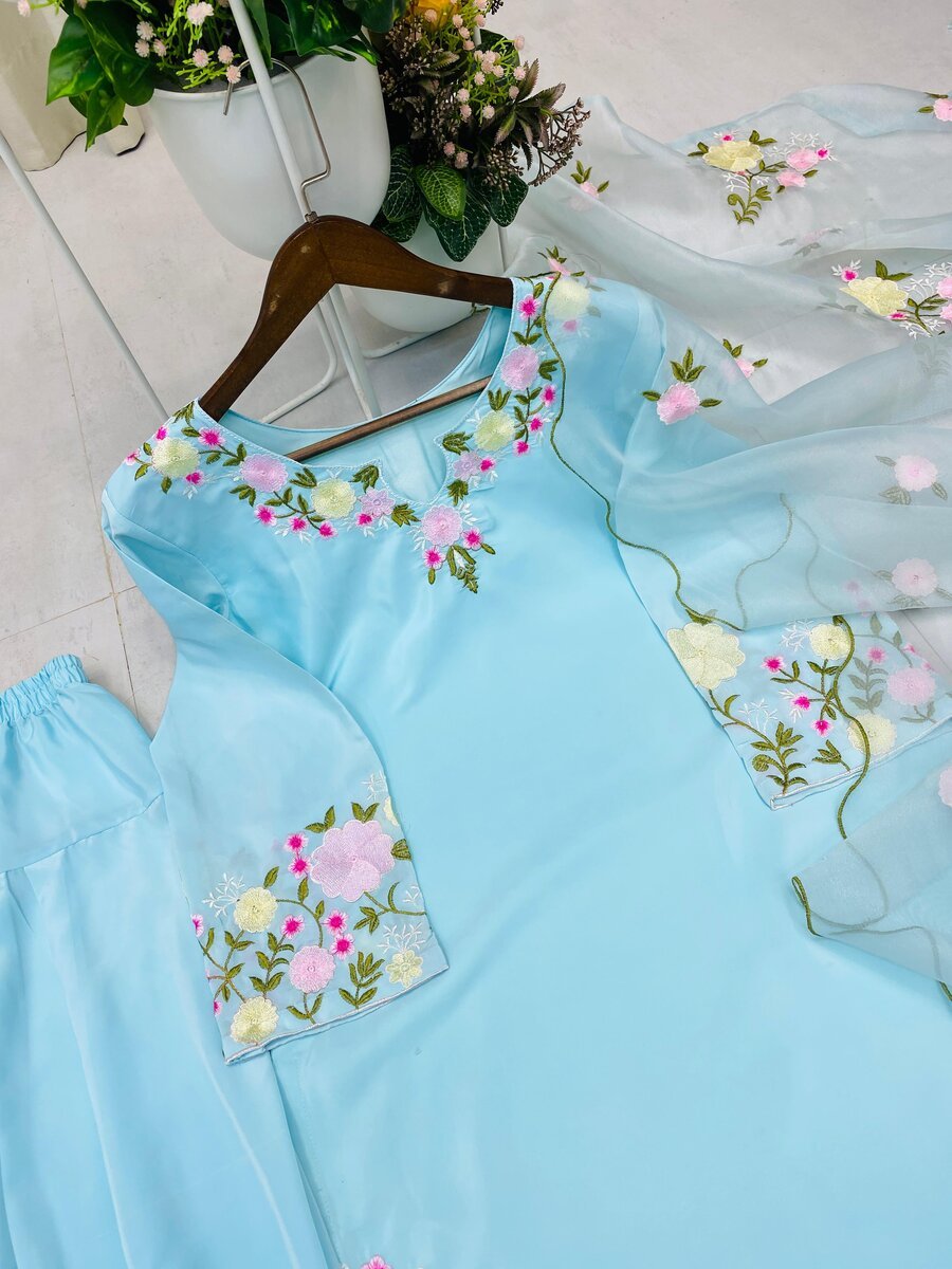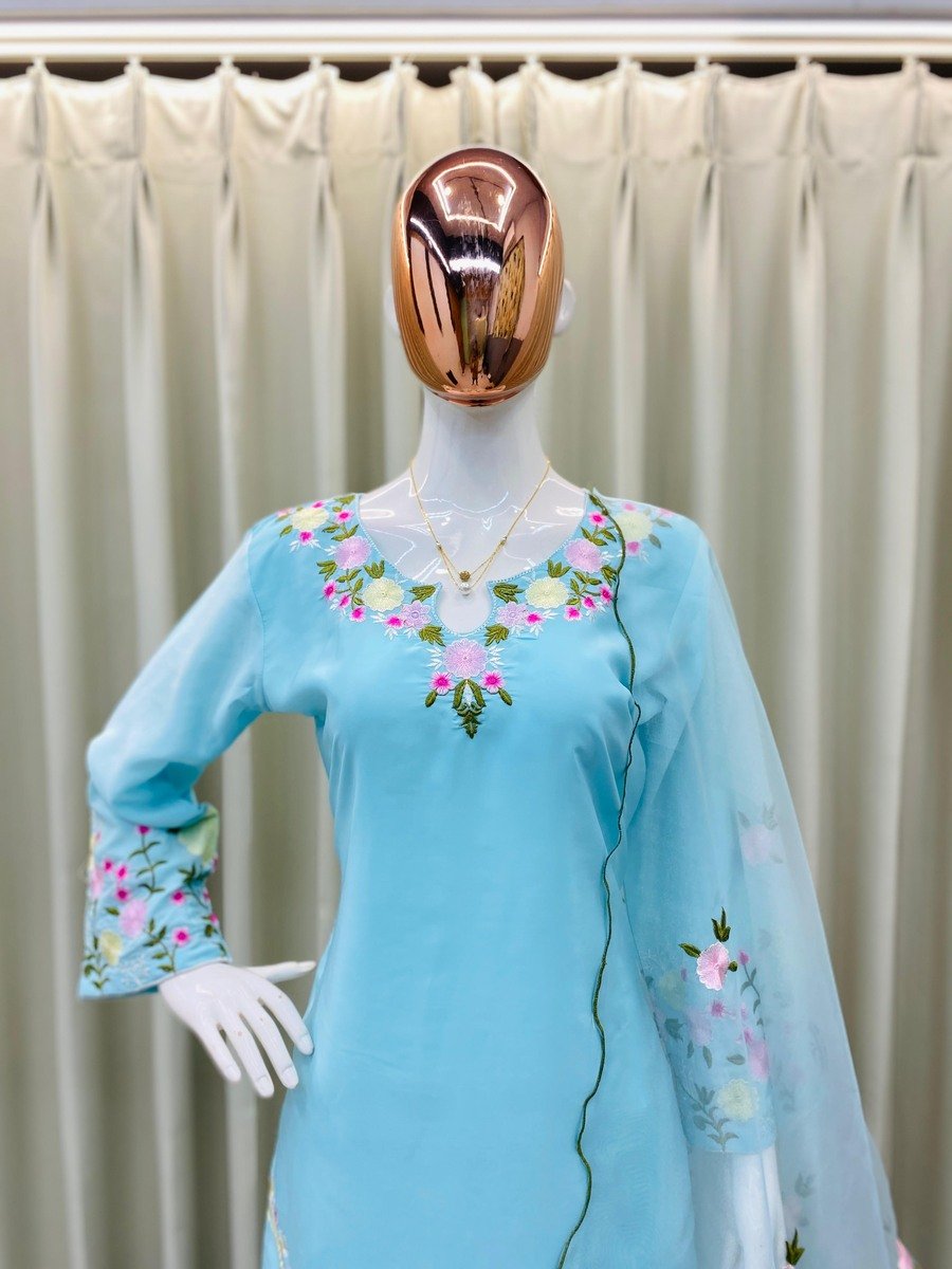 ATTRACTIVE CREPE EMBROIDERY WORK TOP PATIYALA WITH DUPATTA SKY