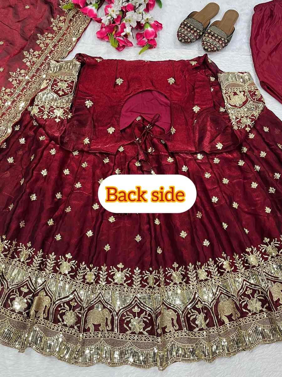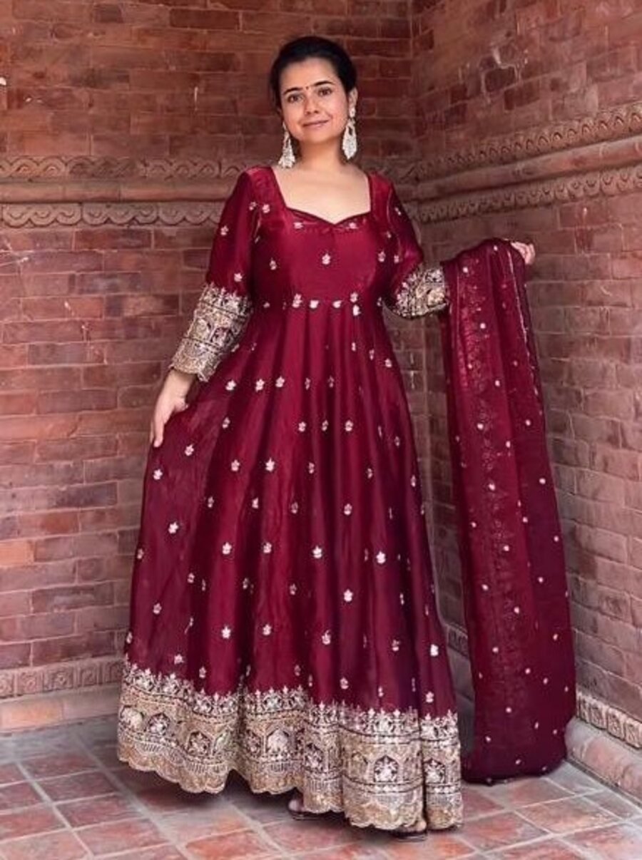 ATTRACTIVE FENDY SILK SEQUENCE AND EMBROIDERY WORK ANARKALI GOWN BOTTOM WITH DUPATTA MAROON