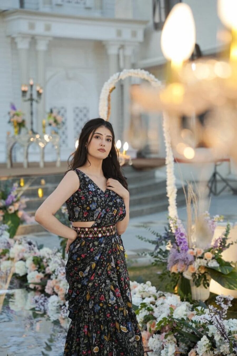 WORK : DIGITAL PRINT AND 3 LAYER RUFFLE WITH ATTACHED DUPATTA