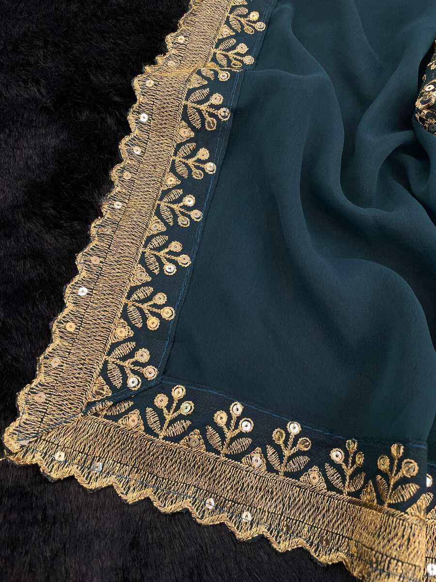 ATTRACTIVE GEORGETTE EMBROIDERY CUTWORK LACE SAREE WITH UNSTITCHED BLOUSE GREEN