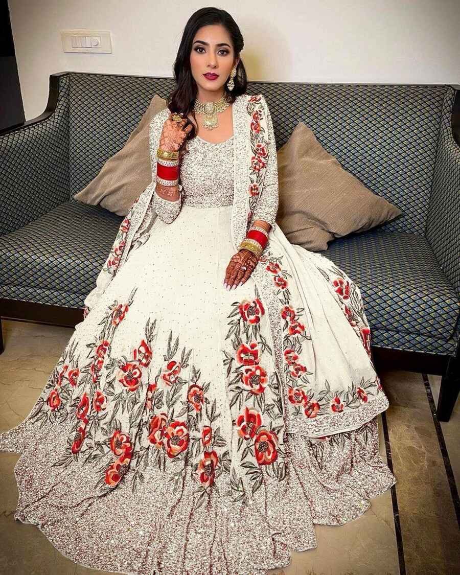 ATTRACTIVE GEORGETTE EMBROIDERY DIAMOND STONE WORK GOWN BOTTOM WITH DUPATTA WHITE