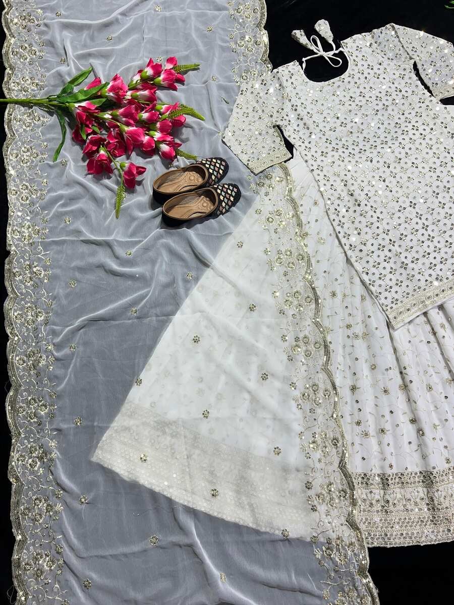 ATTRACTIVE GEORGETTE EMBROIDERY SEQUENCE TOP LEHENGA WITH DUPATTA WHITE